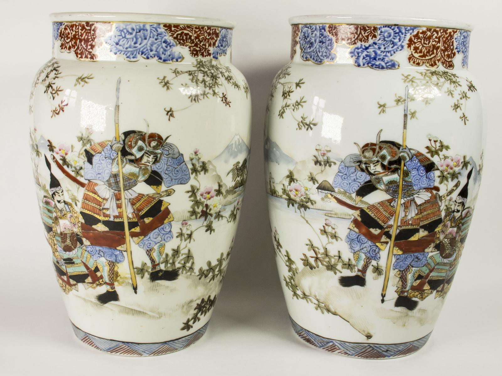 Large Mirror Pair of Japanese Samurai Kutani Vases