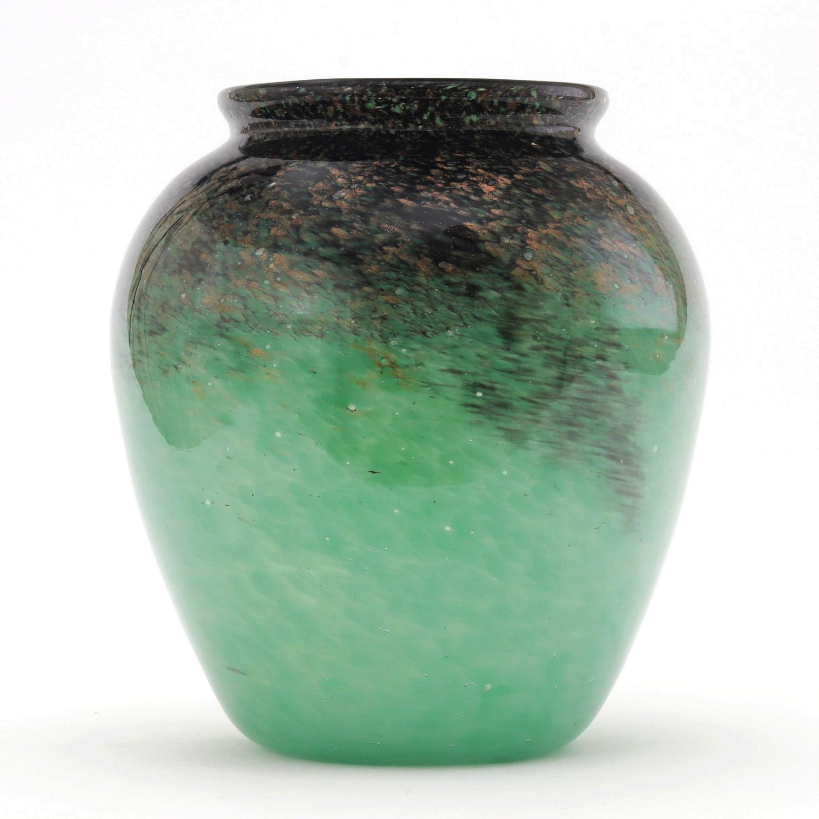 Large Monart Art Deco Glass Vase With Gold Aventurine c.1930