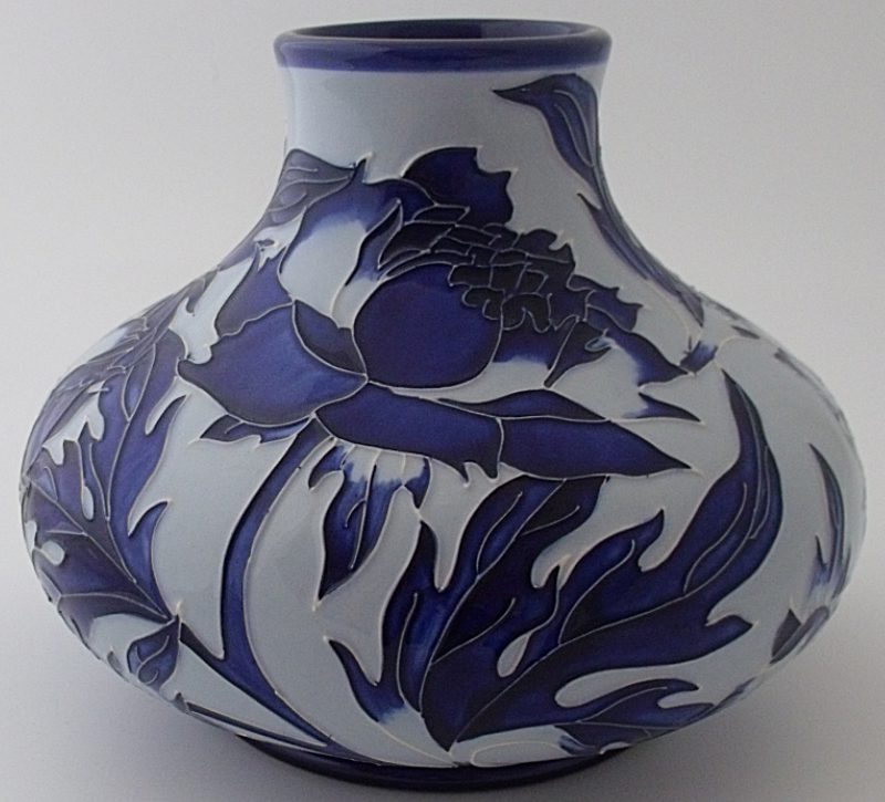 Large Moorcroft Pottery Midnight Blue & Peony Vase by Philip Gibson