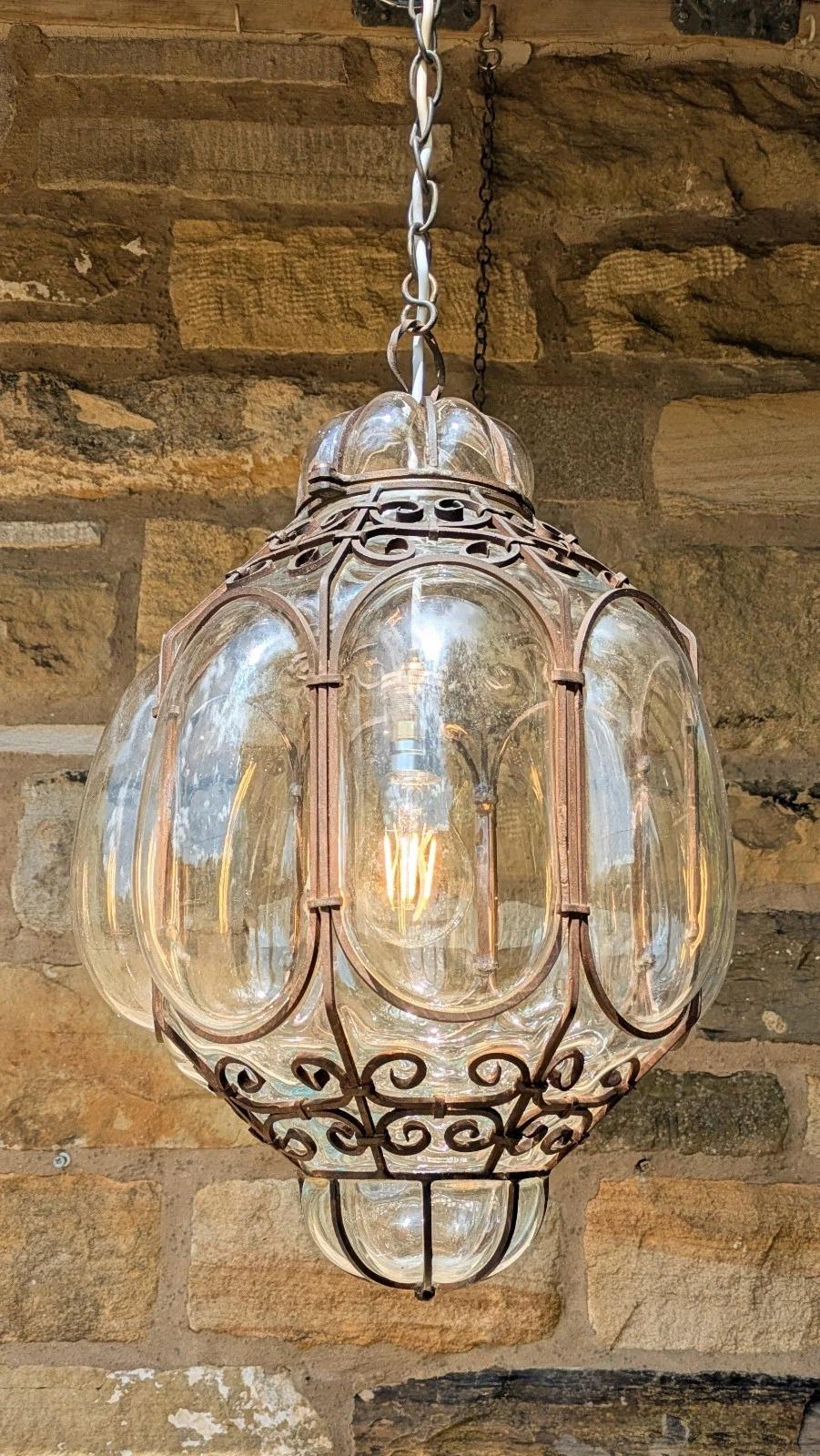 Large Murano Wire Cage Blown Glass Lantern (1 of 7)