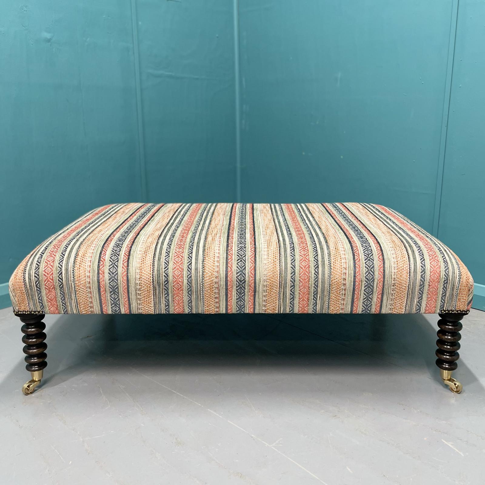 Large Newly Upholstered Bobbin Leg Centre Foot Stool (1 of 10)