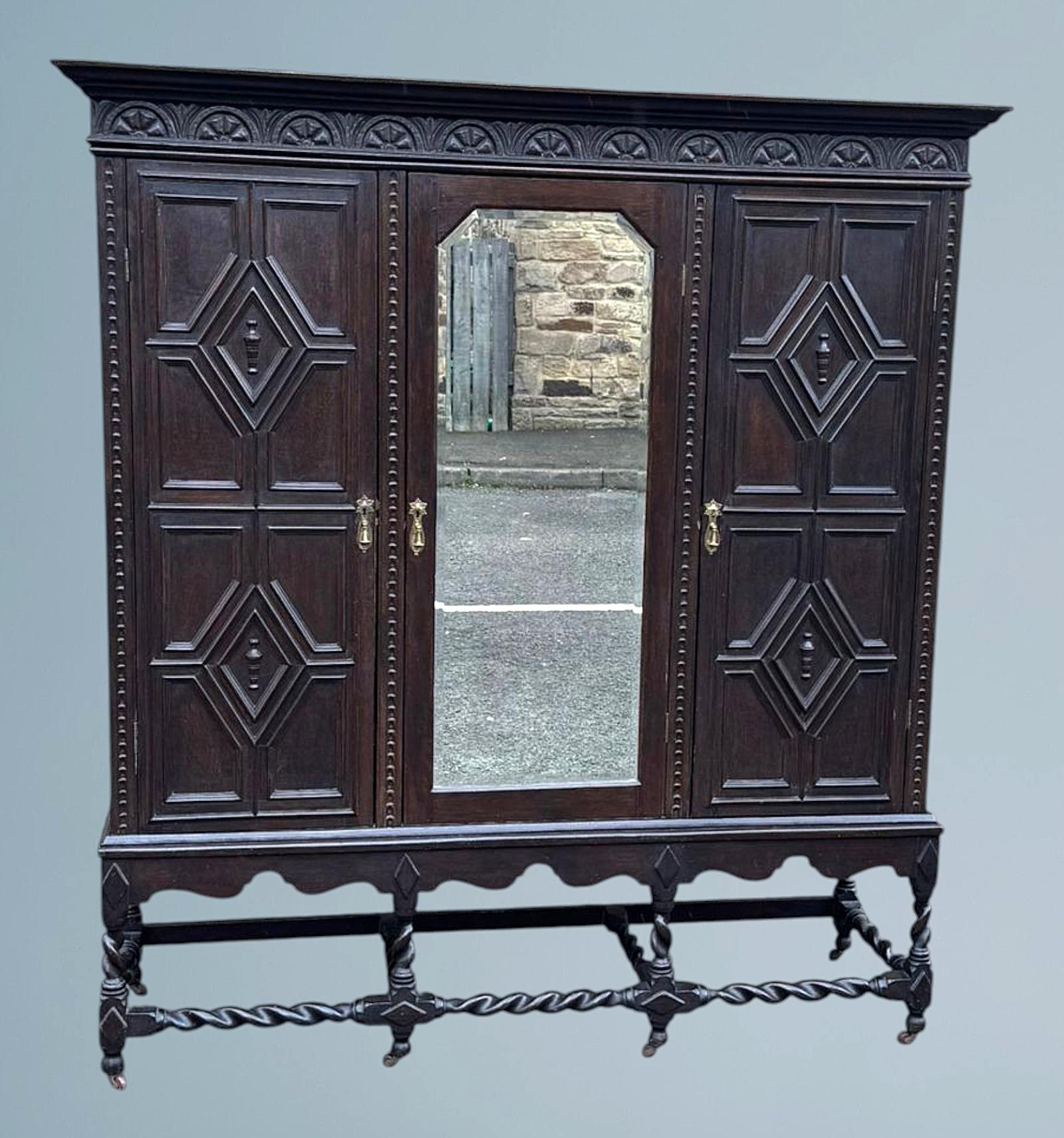 This Large Oak Barley Twist Triple Door Wardrobe is located in Durham, United Kingdom