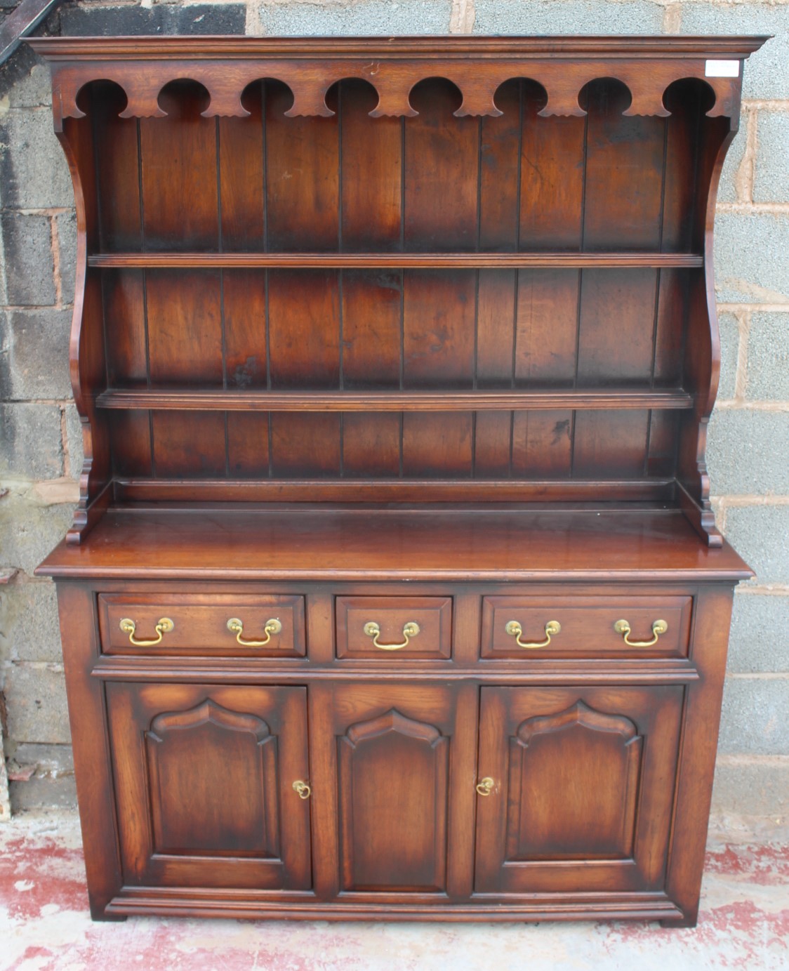 Large Oak Dresser with Display Rack & Swan Handles c.1960