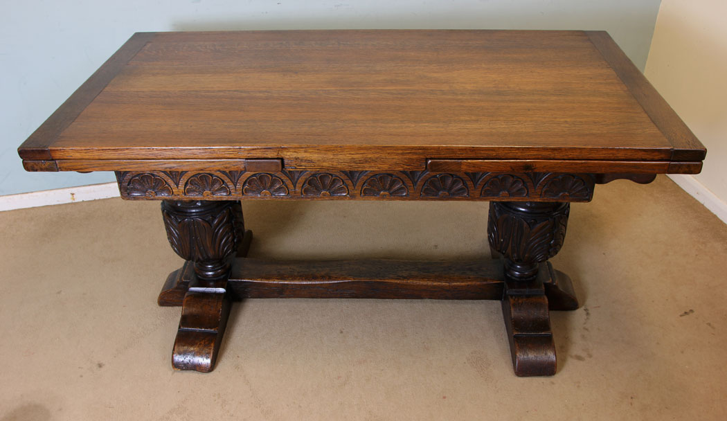 Large Oak Refectory Draw Leaf Farmhouse Dining Table C.1920