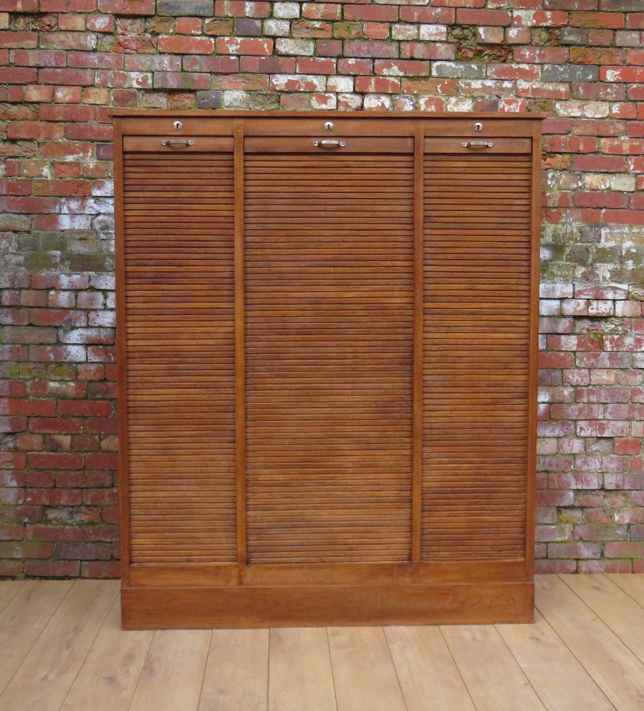 Large Oak Triple Tambour Front Haberdashery Cabinet