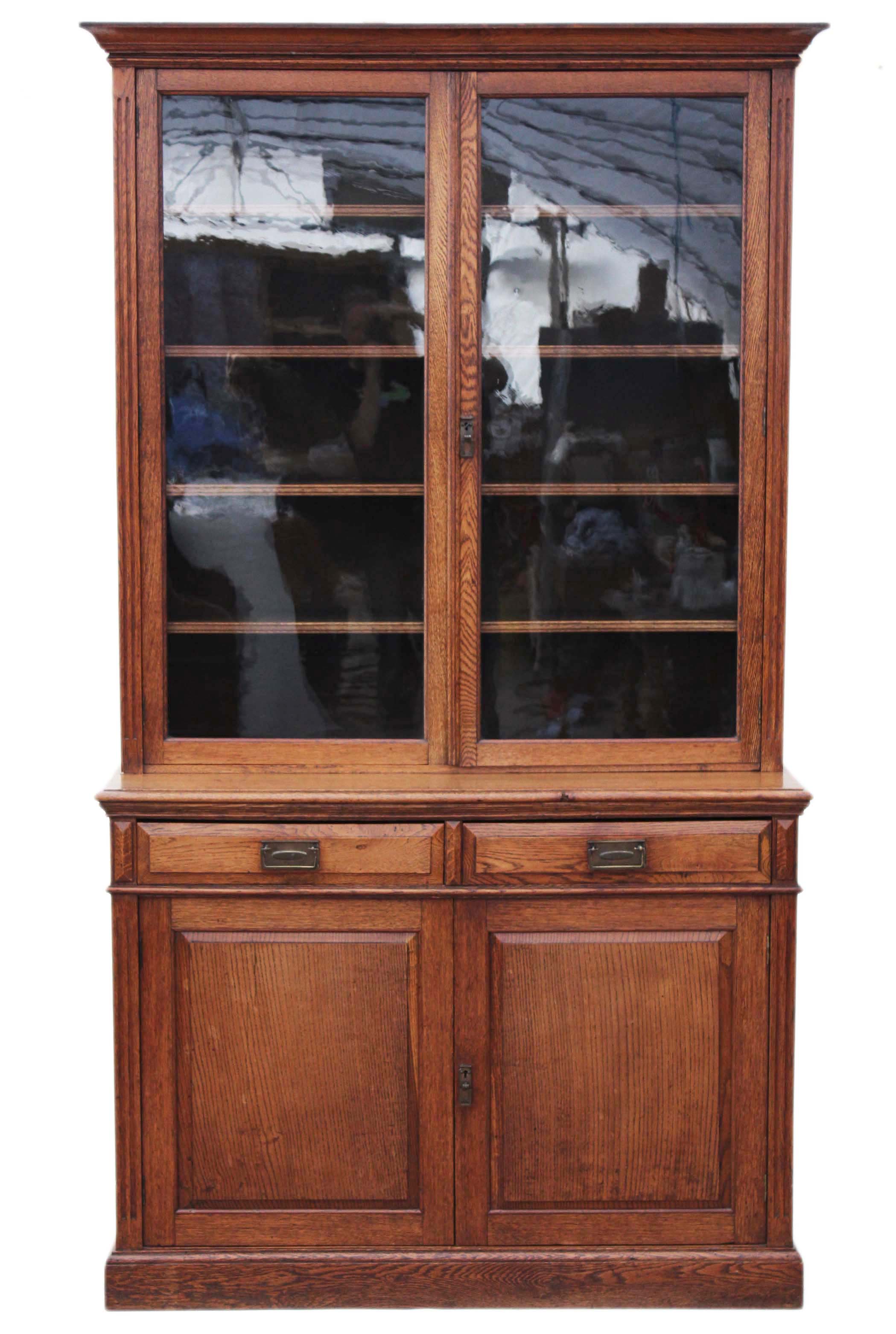 Large Oak Victorian Arts and Crafts Glazed Bookcase / Display Cabinet