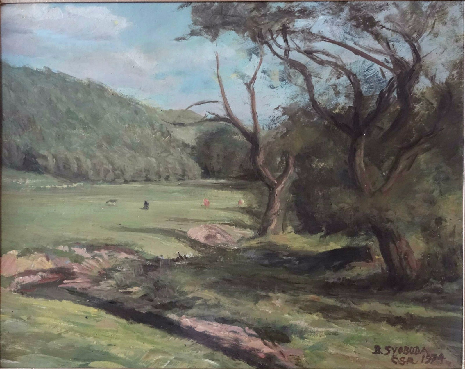 Large Oil on Board Landscape Painting - Signed - Lovely Period Gesso Frame