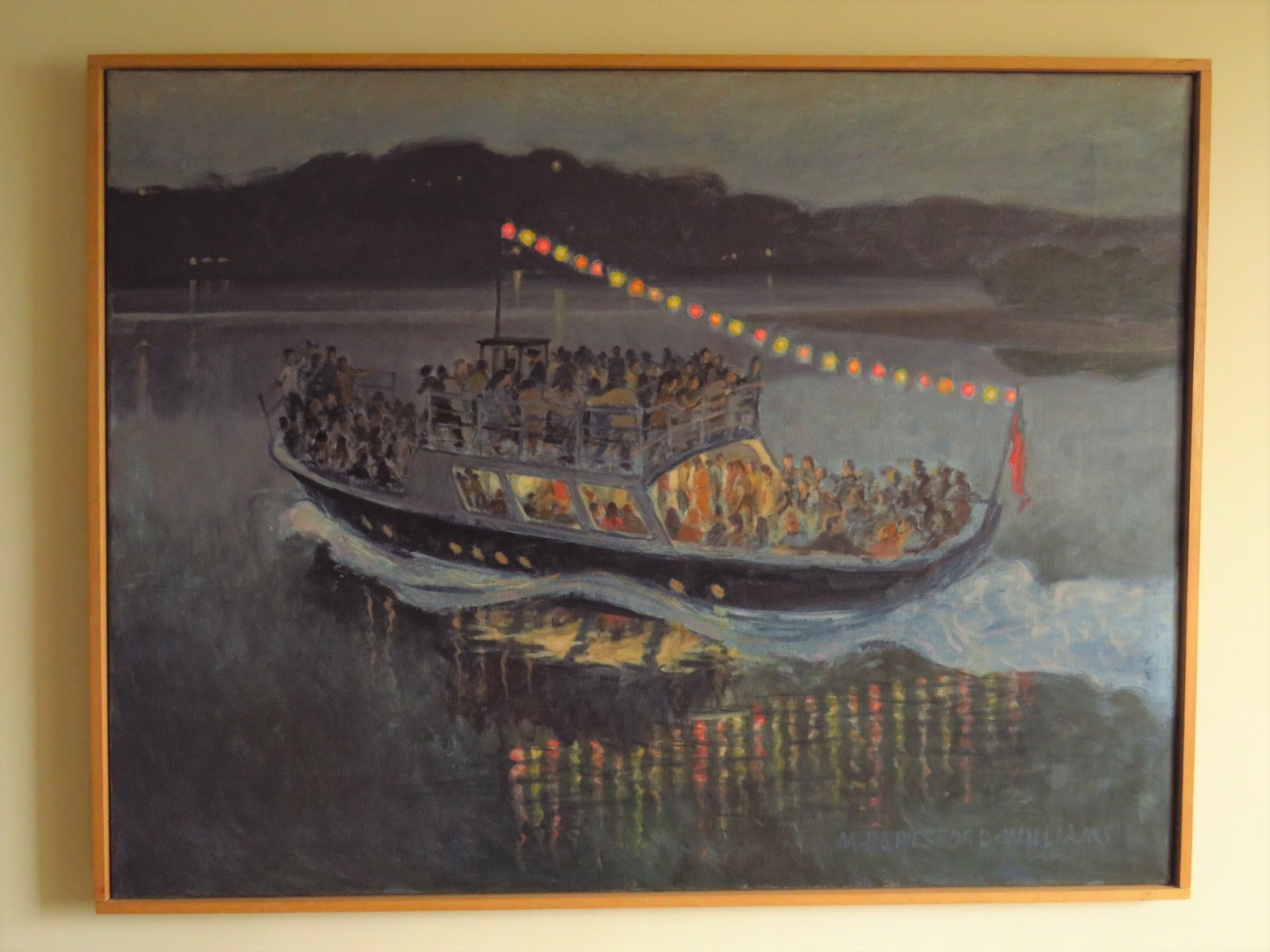 Large Oil on Canvas Mary Beresford Williams Signed Dartmouth River Boat Scene