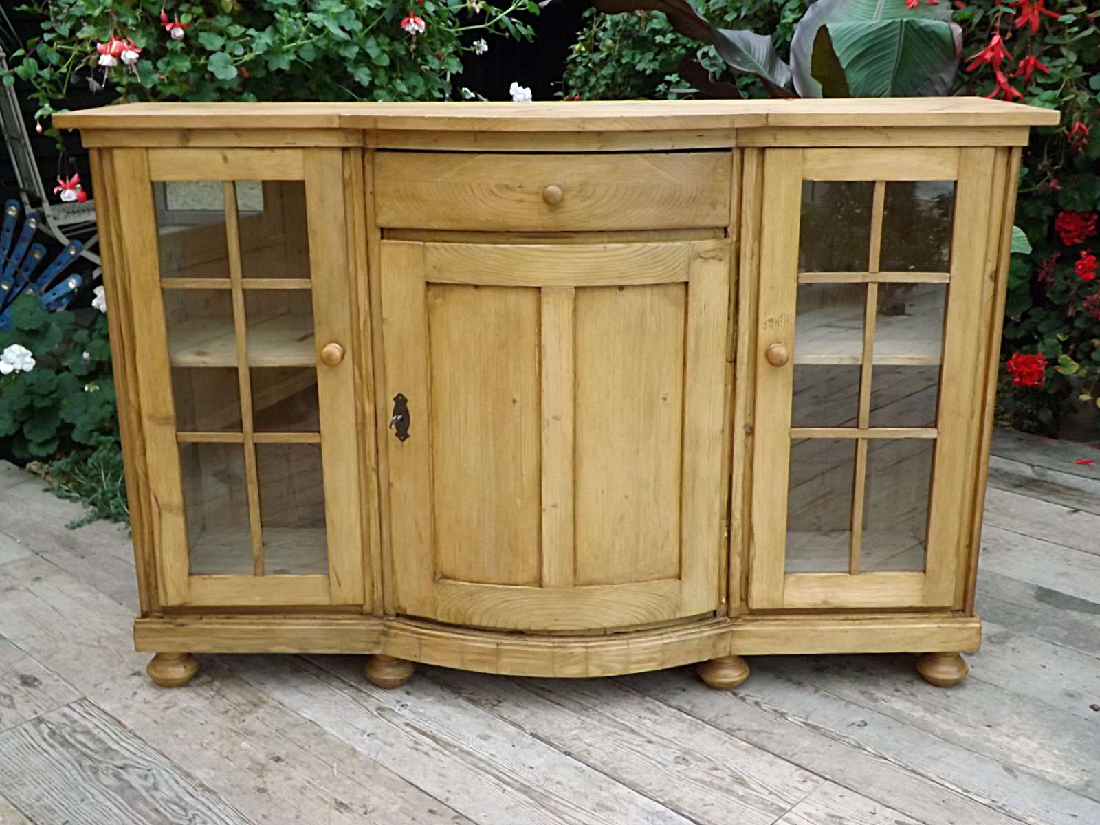 Large Old Antique Pine Glazed Sideboard / Cupboard / Cabinet / TV Stand We Deliver!