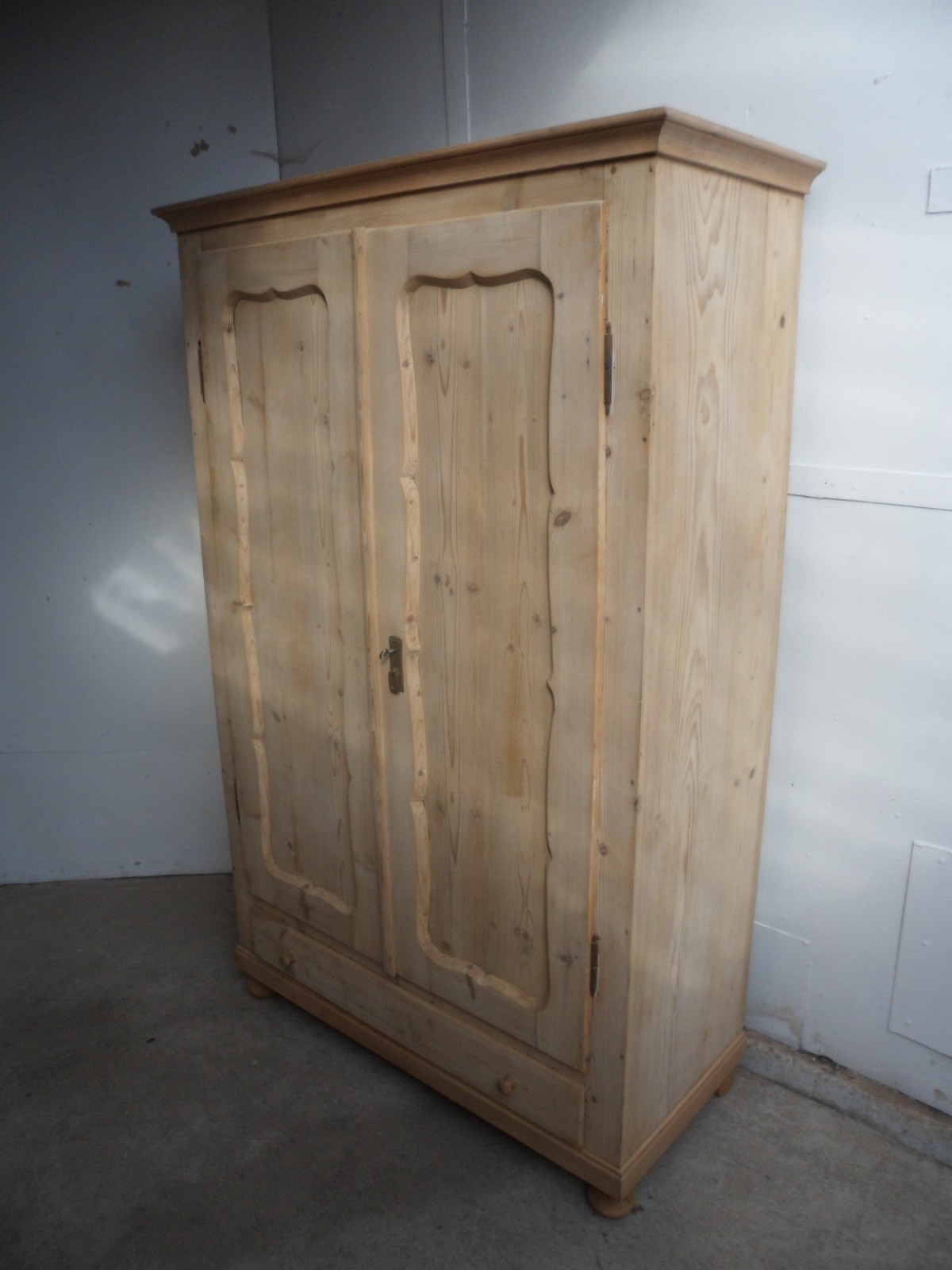 Large Old Pine 2 Door 1 Drawer Carved Storage Cupboard to wax / paint
