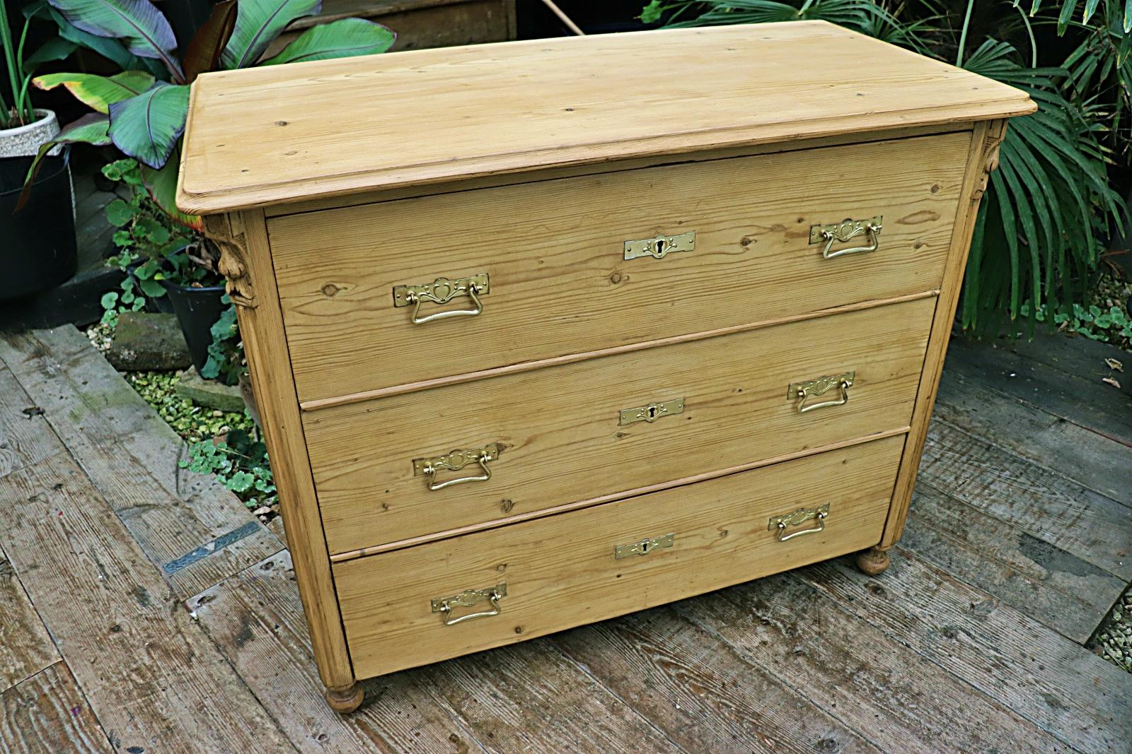 Large Old Victorian Pine Chest Of Three Drawers/ Sideboard