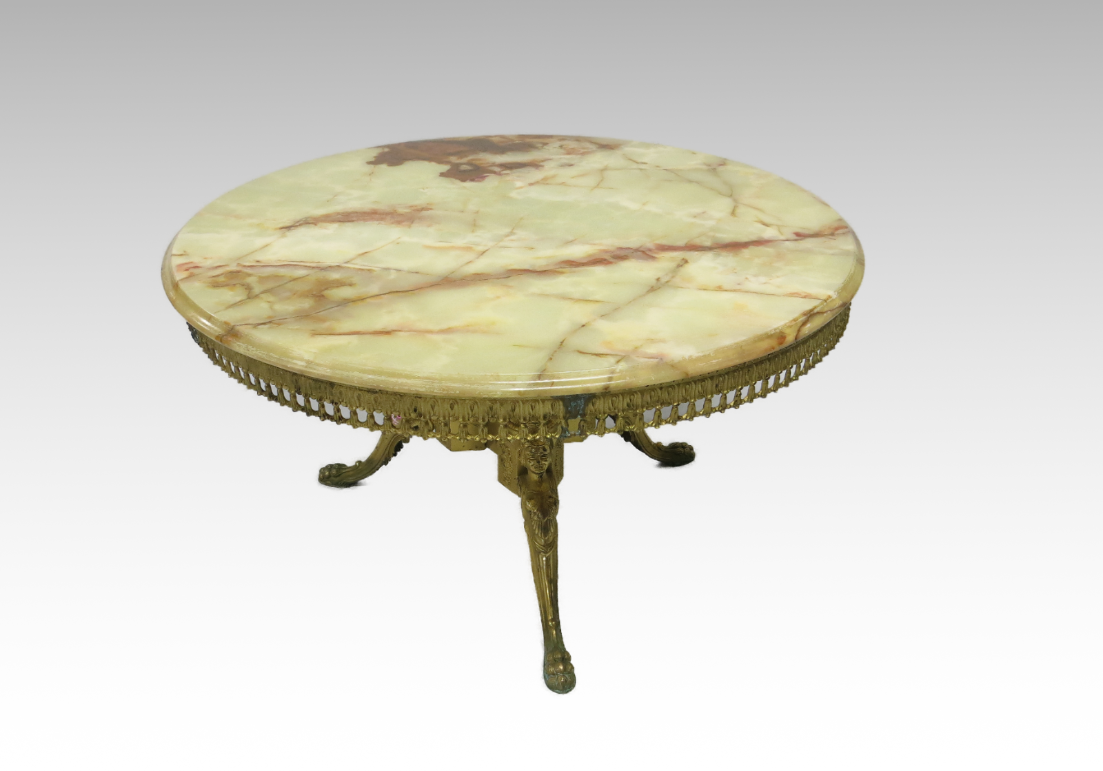 Large Onyx Coffee Table with Elaborate Gilt Metal Base