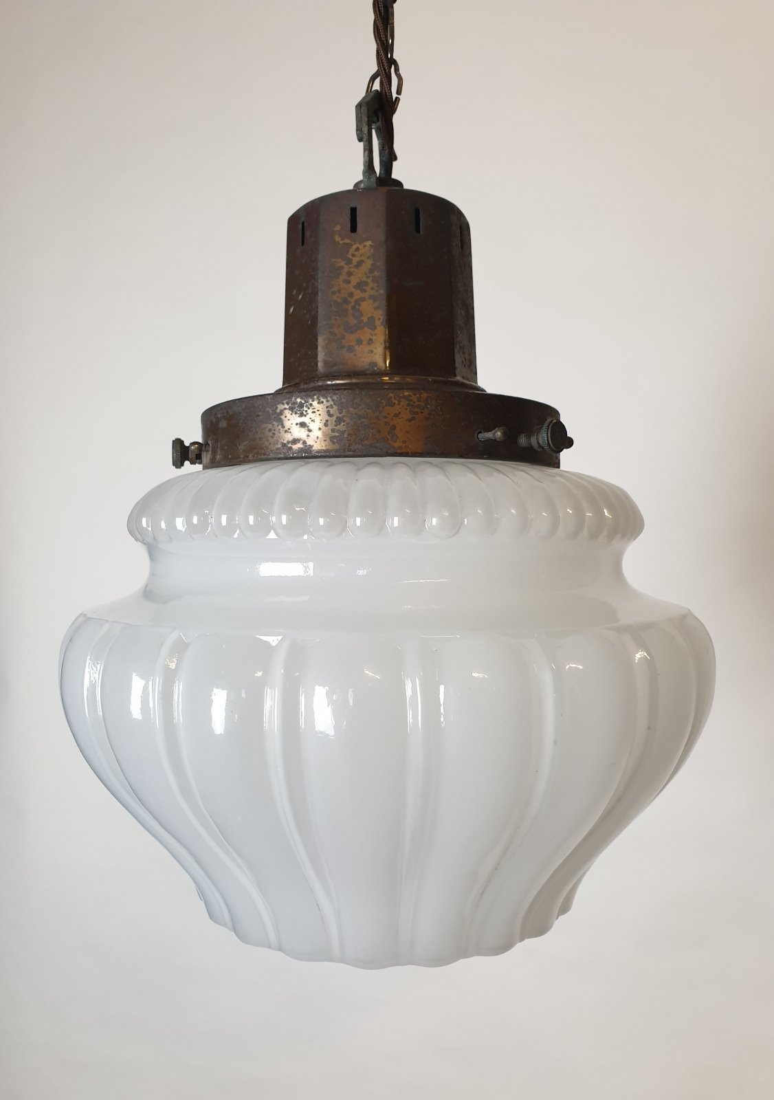 Large Opaque Ceiling Light with Distressed Bronzed Gallery, Rewired