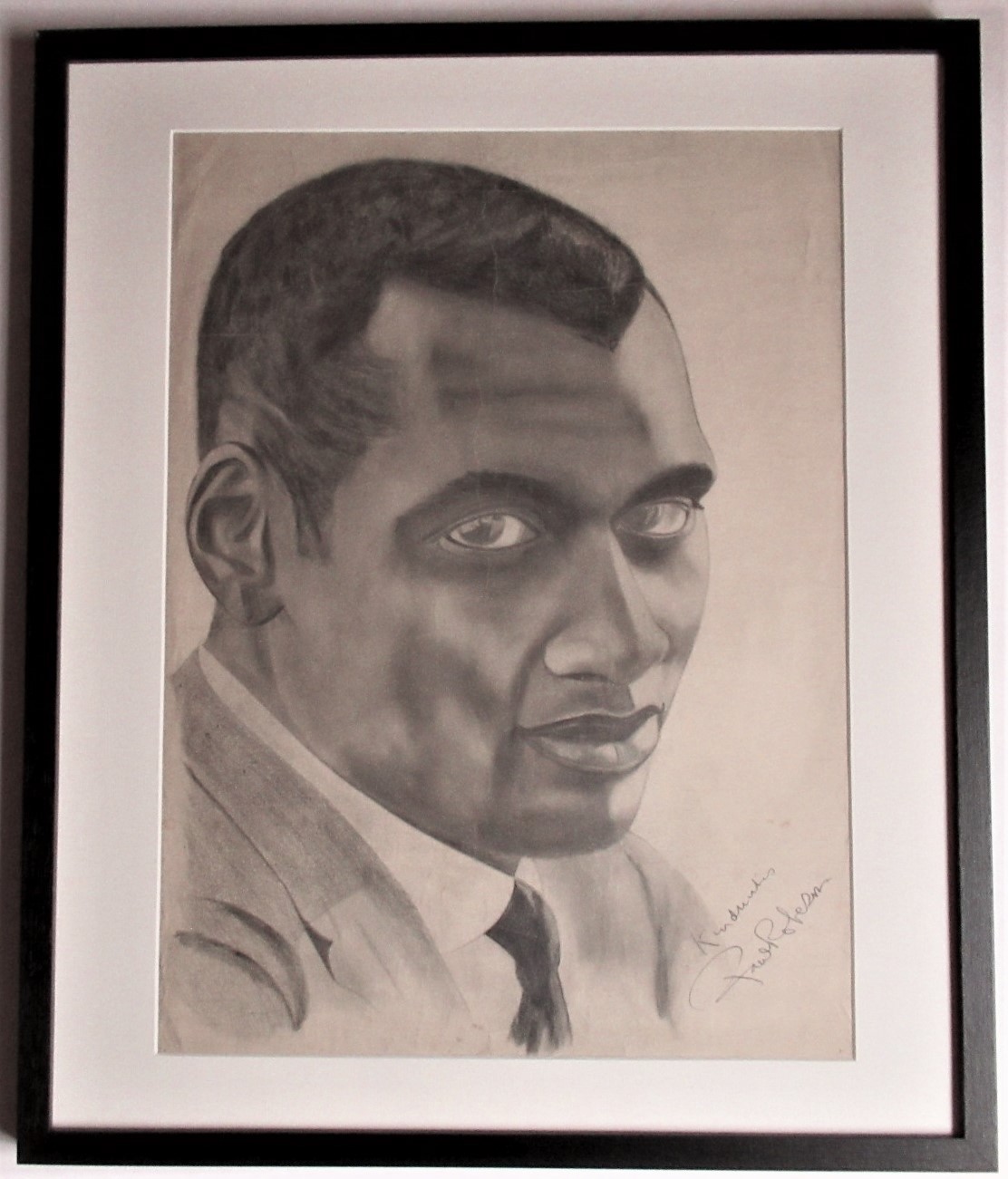 Large Original Autographed Drawing of Paul Robeson C.1938, Reginald E Bass