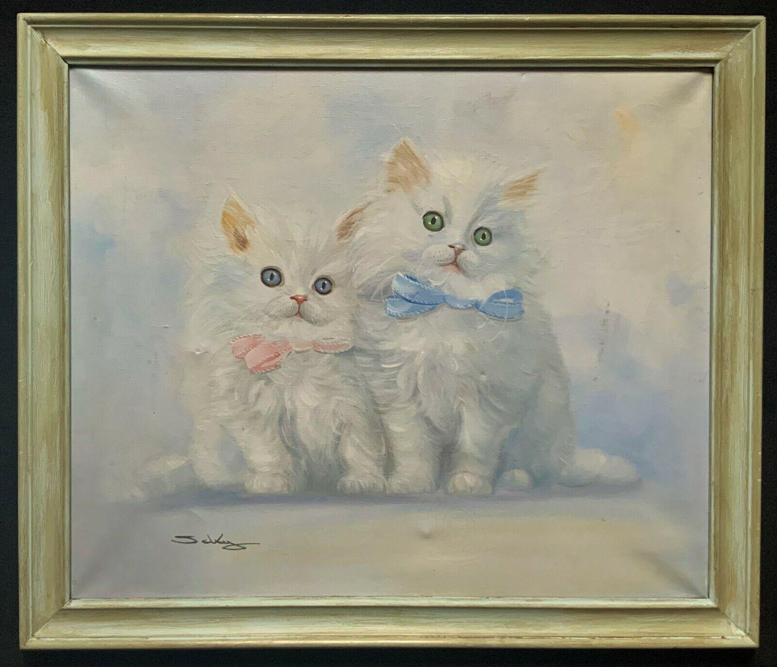 Large Original Oil on Canvas Pet Portrait of 2 Little Kittens