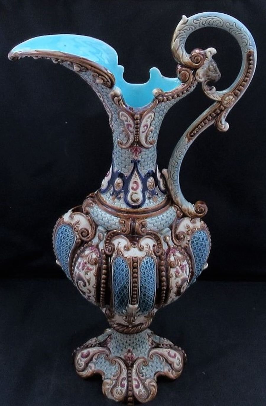 Large Ornate German / Austrian Majolica Ewer by Wilhelm Schiller & Son