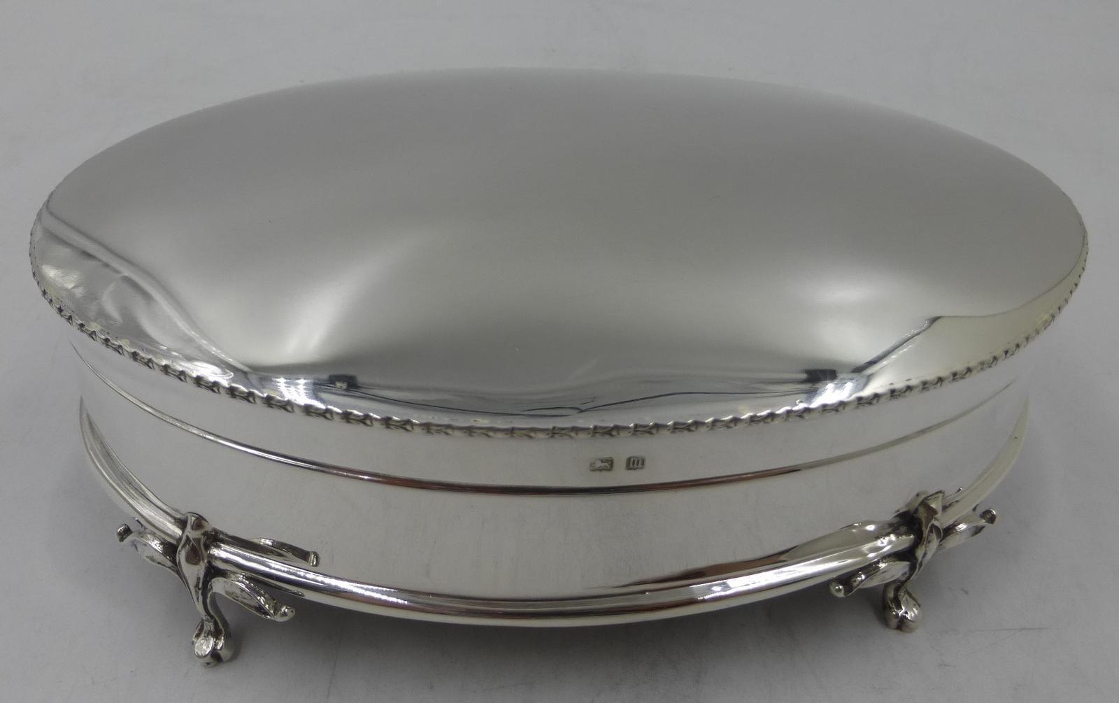 Large Oval Antique Silver Trinket Box Birmingham 1911