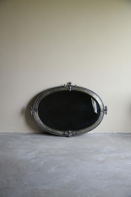 Large Oval Early 20th Century Metal Mirror (1 of 5)