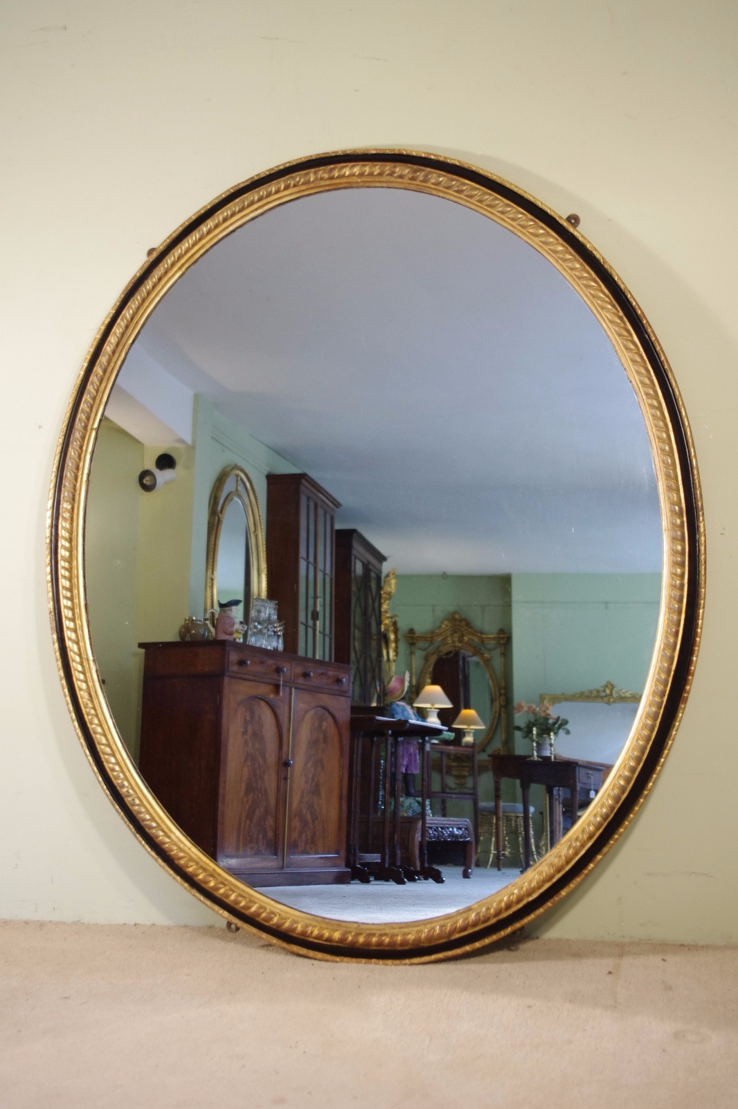 Large Oval Ebonised & Parcel Gilt Mirror (1 of 1)