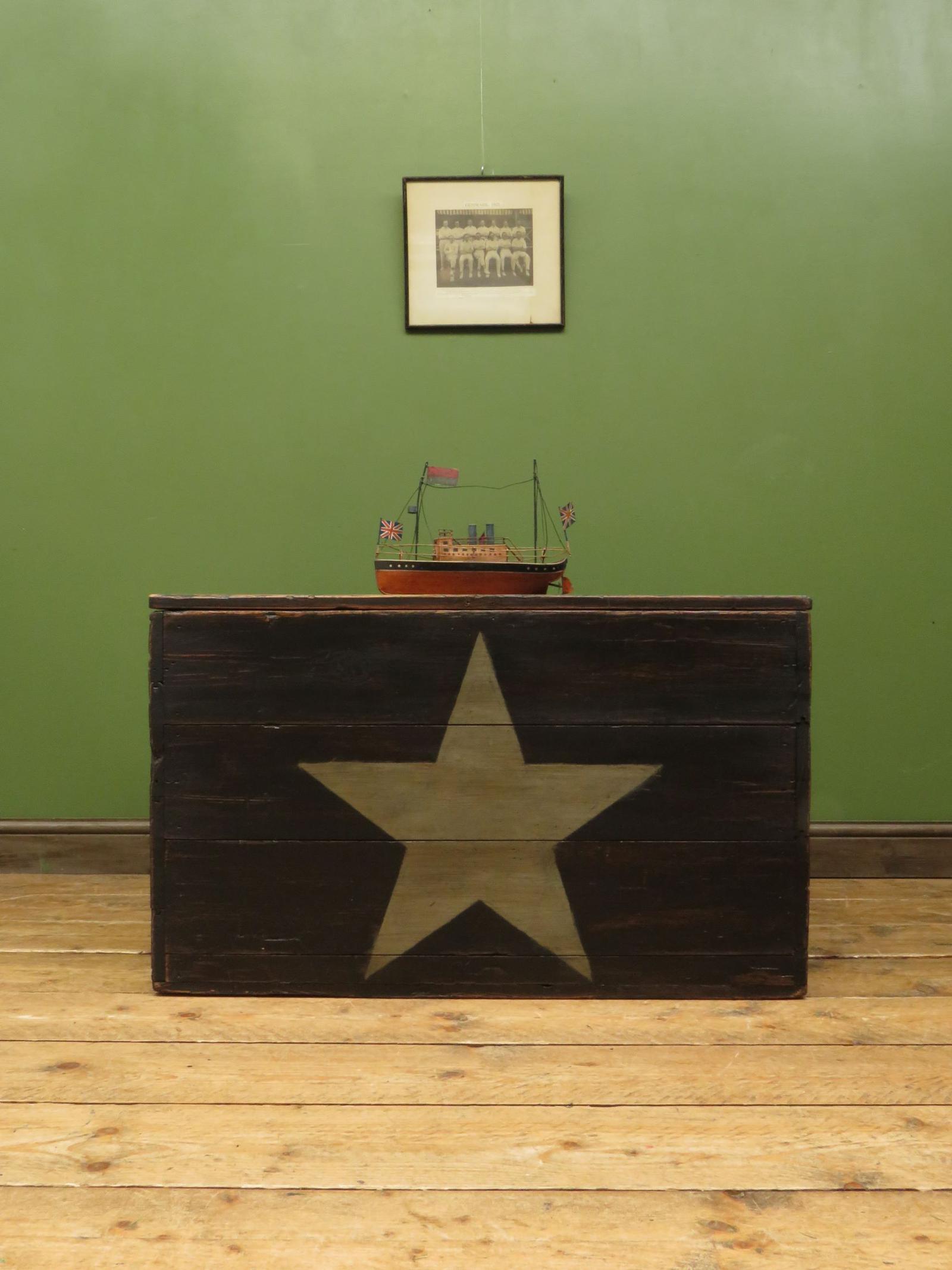 Large Painted Black Chest Trunk with Star, Military Storage Box