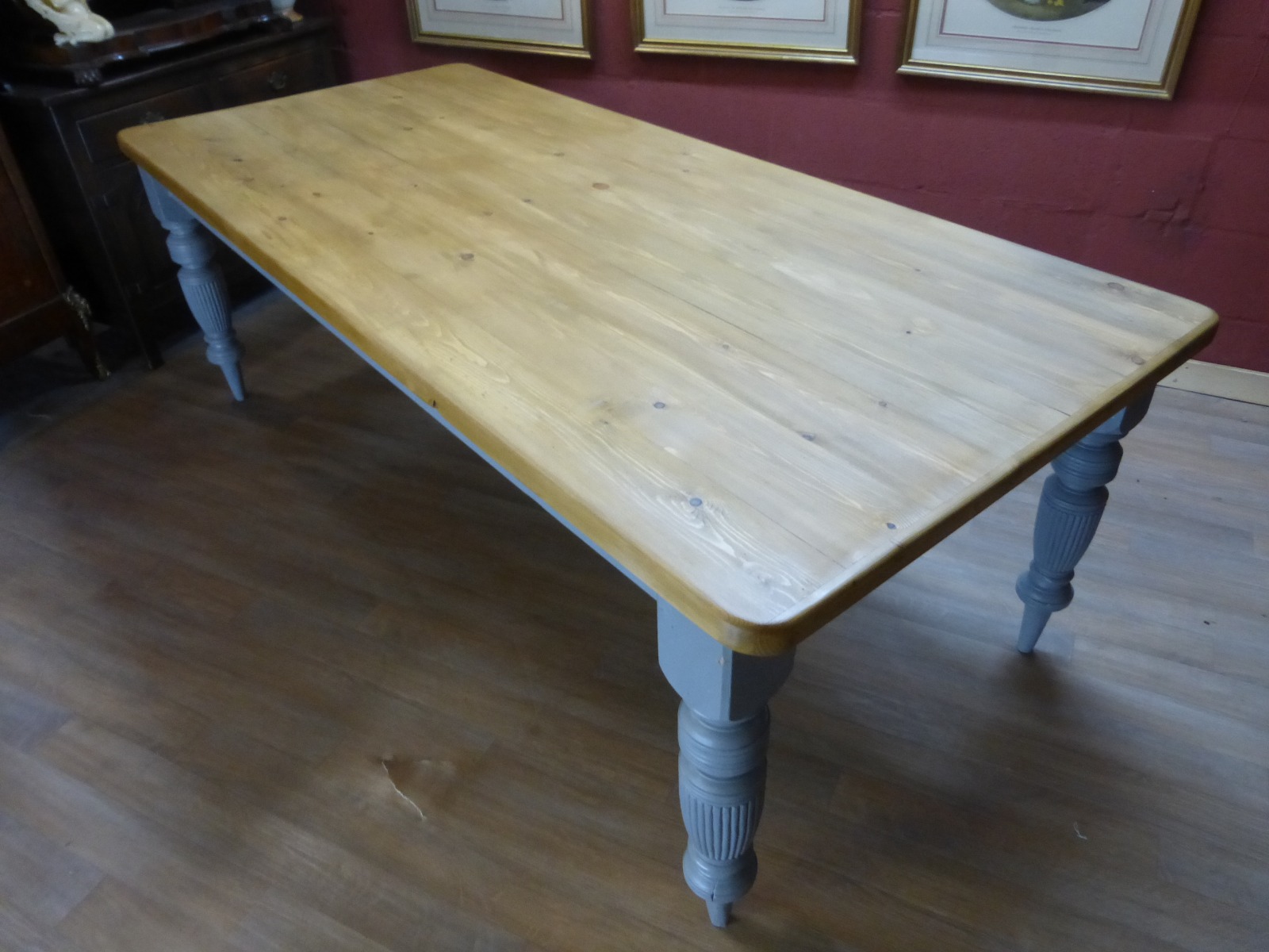 Large Painted Pine and Oak Table Dining Table Kitchen Table Antique Vintage