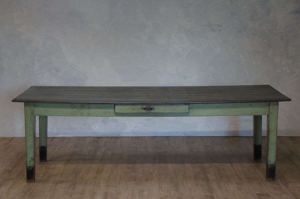 Large Painted Pine & Zinc Antique Serving Table