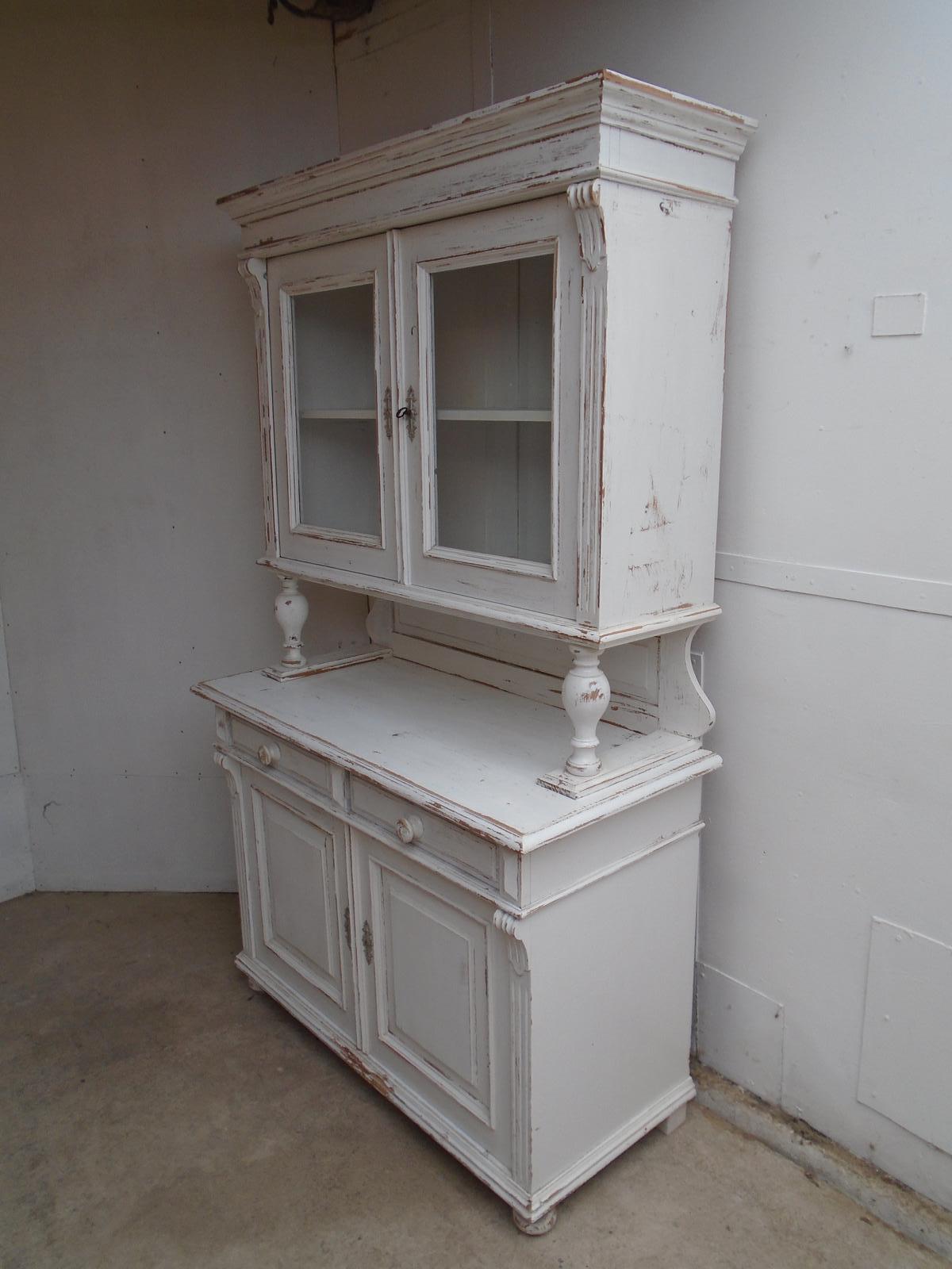 Large Painted White Victorian 2 Door Antique Pine Kitchen Dresser