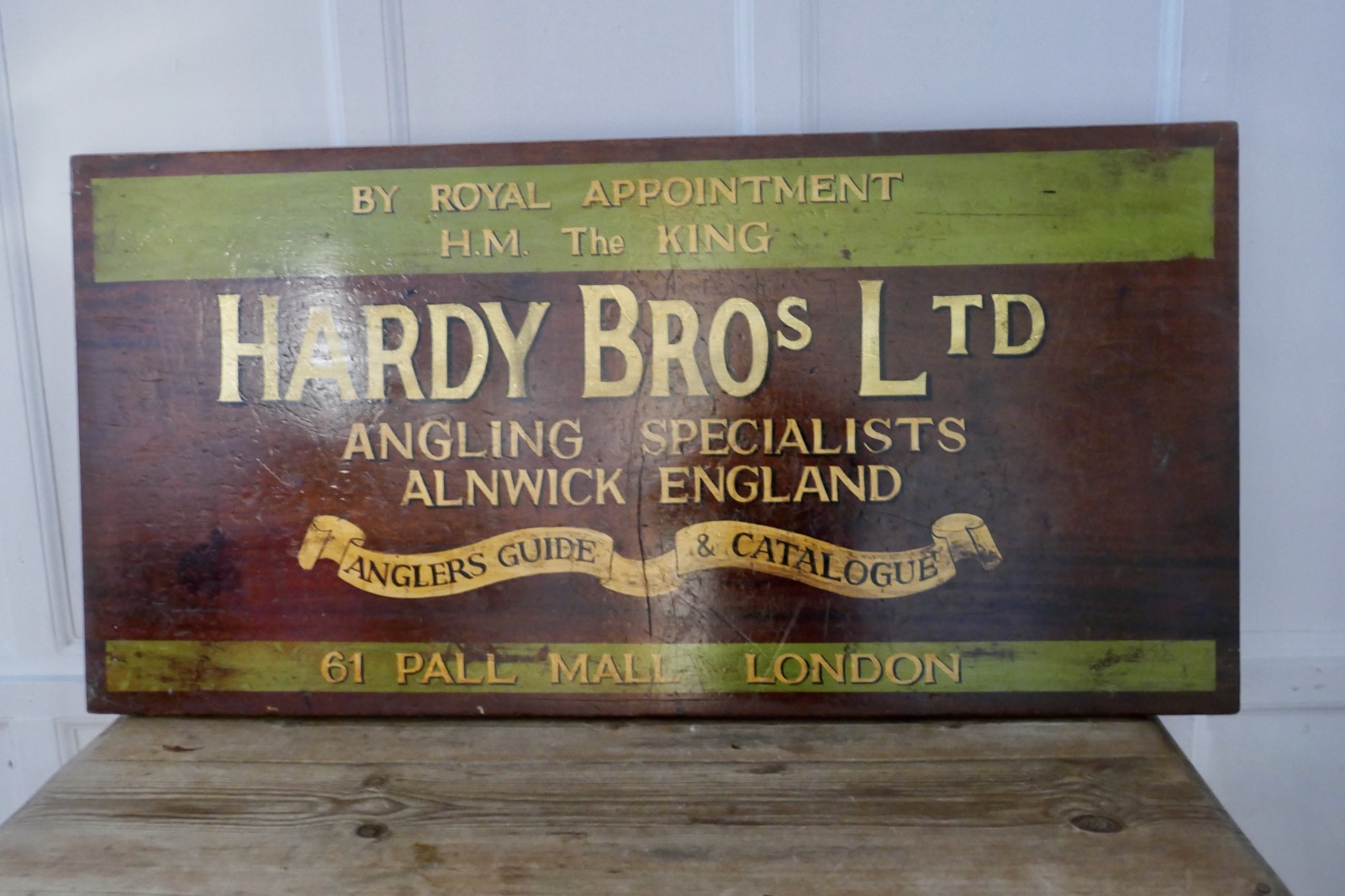 Large Painted Wooden Advertising Sign, Hardy Bros Ltd, Angling Specialists