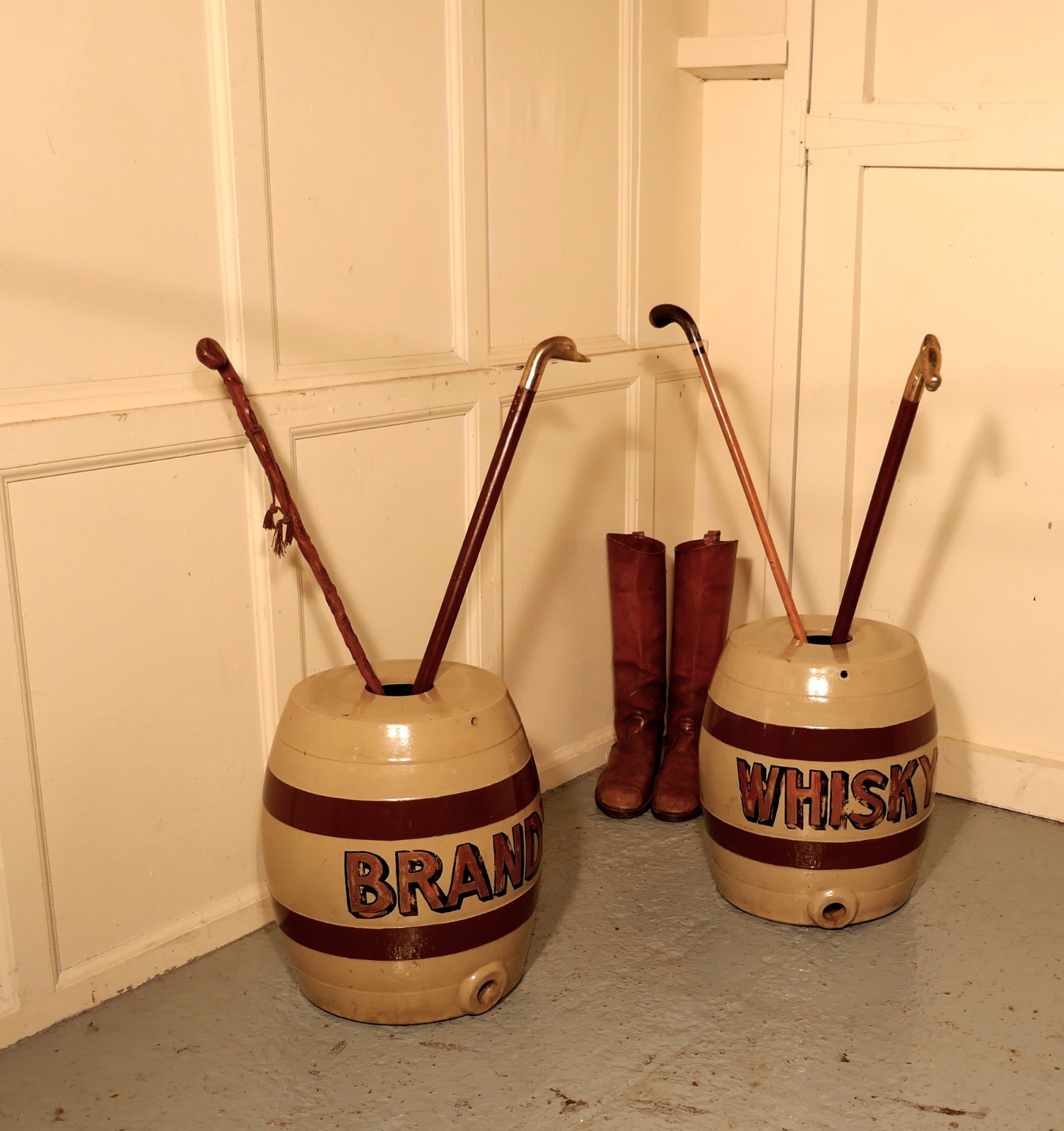 Large Pair 19th Century Stoneware Brandy & Whisky Barrels, Quirky Umbrella & Stick Stands