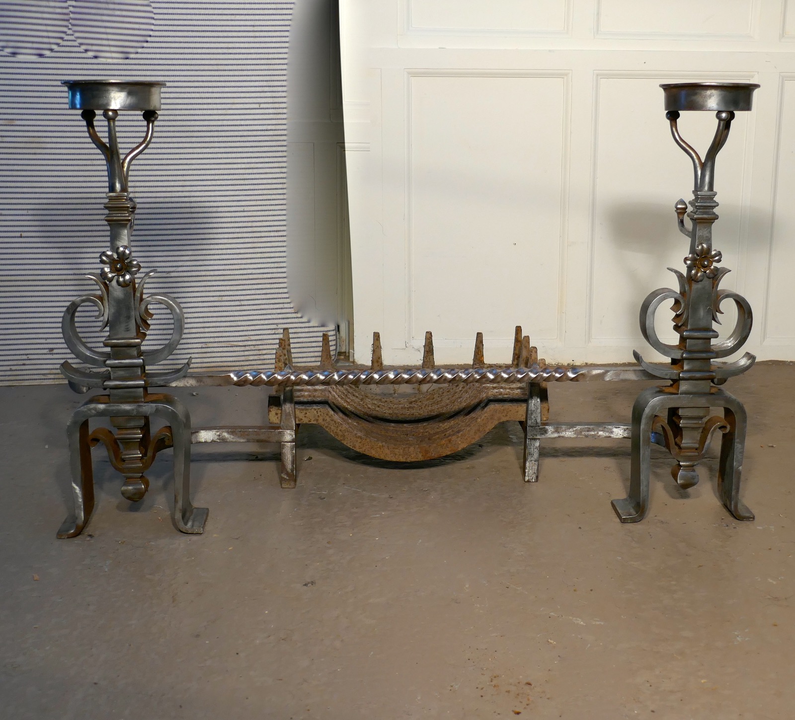 Large Pair of 19th Century French Iron Andirons or Fire Dogs