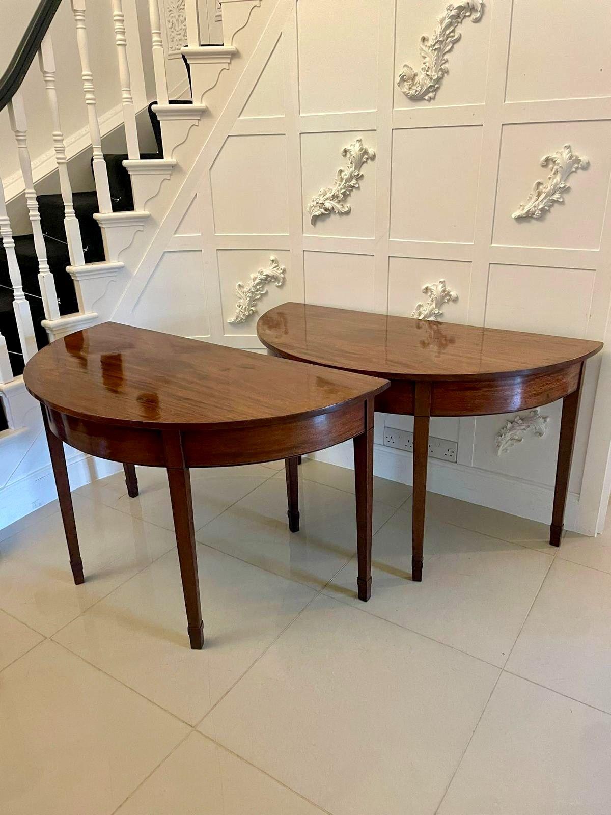 Large Pair of Antique George III Quality Mahogany Demi Lune Console Tables