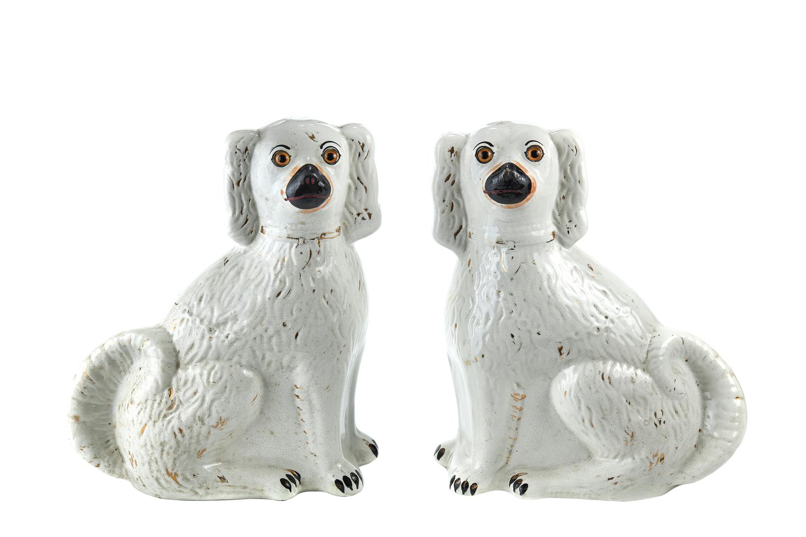 Large Pair of Antique Staffordshire Dogs with Glass Eyes
