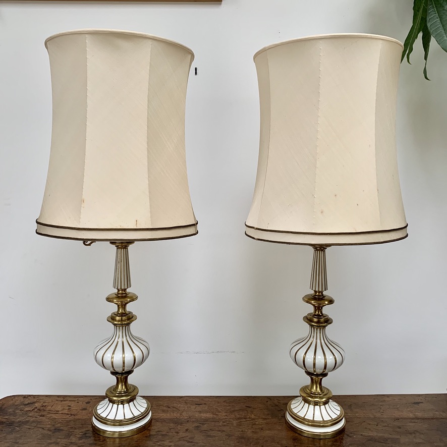 Large Pair of Brass & Enamel Lamps with Shades (1 of 1)