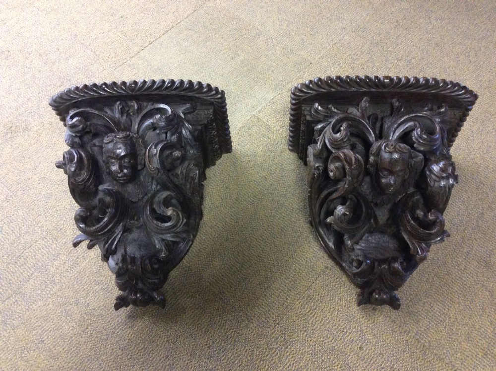 Large Pair of Carved Oak Wall Brackets c.1800 / 1830