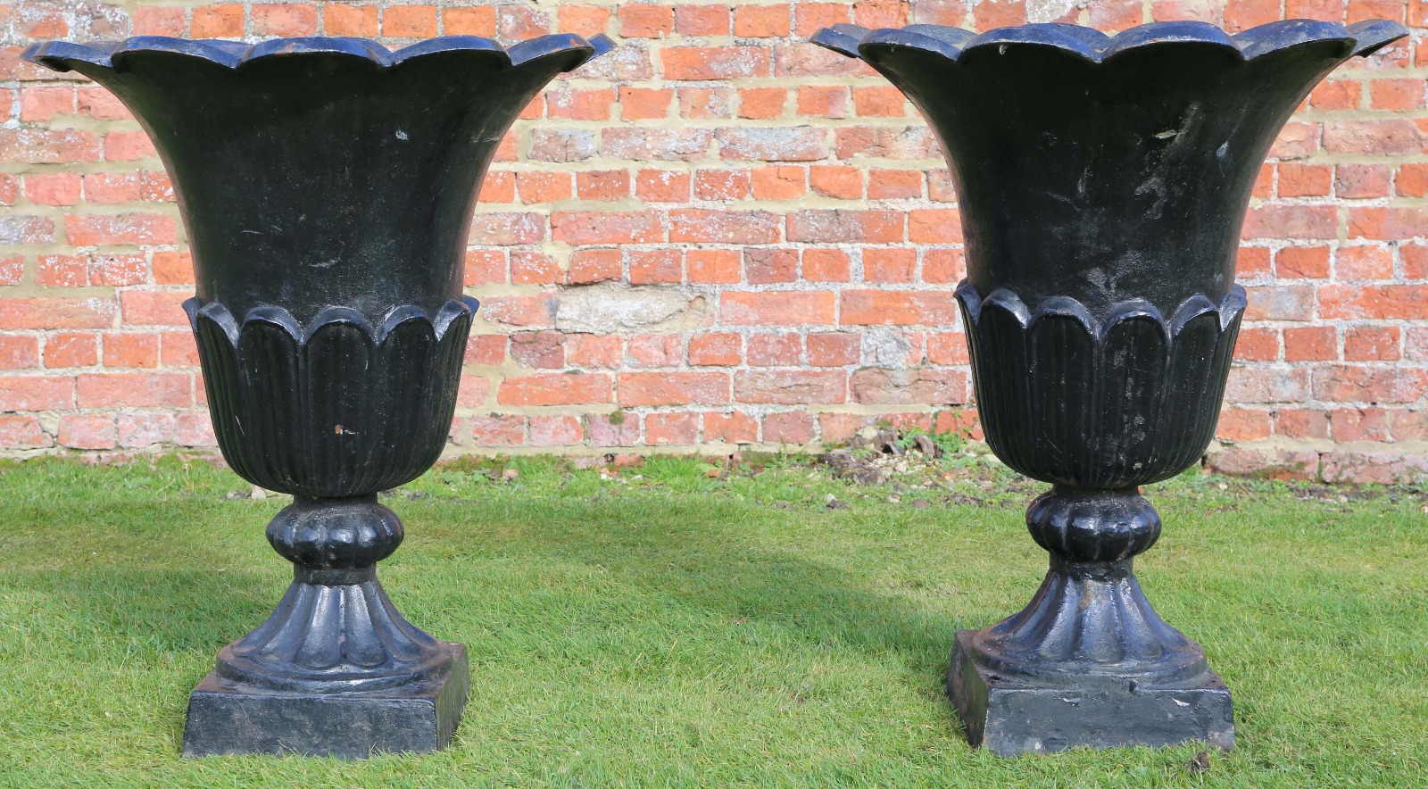 Large Pair of Cast Iron Planters Urns Plant Pots Tulip
