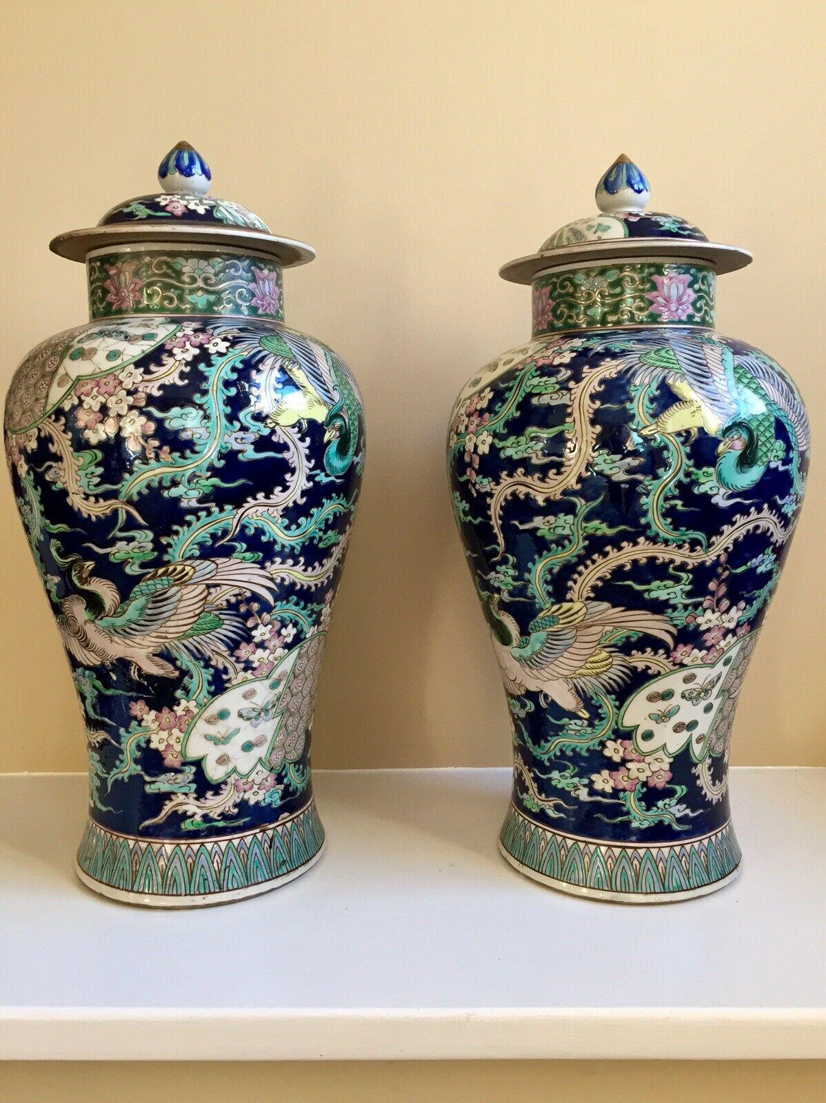 Large Pair of Chinese Phoenix Temple Jars, Qing Dynasty 19th Century