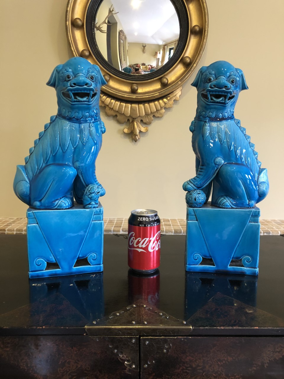 Large Pair of Chinese Turquoise Dogs of Fo, Buddhist Lions