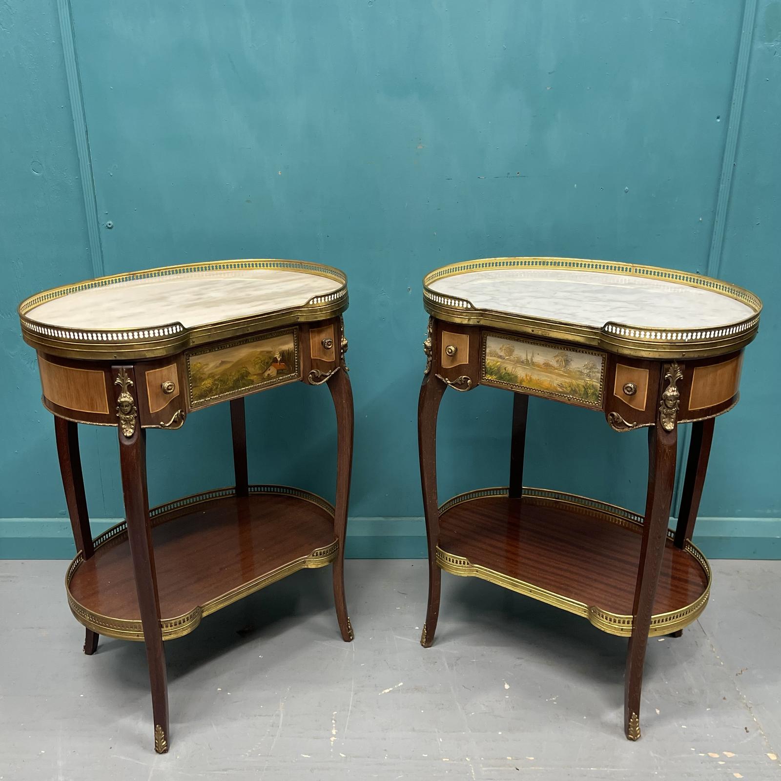 Large Pair of French Kidney Shape Side Tables