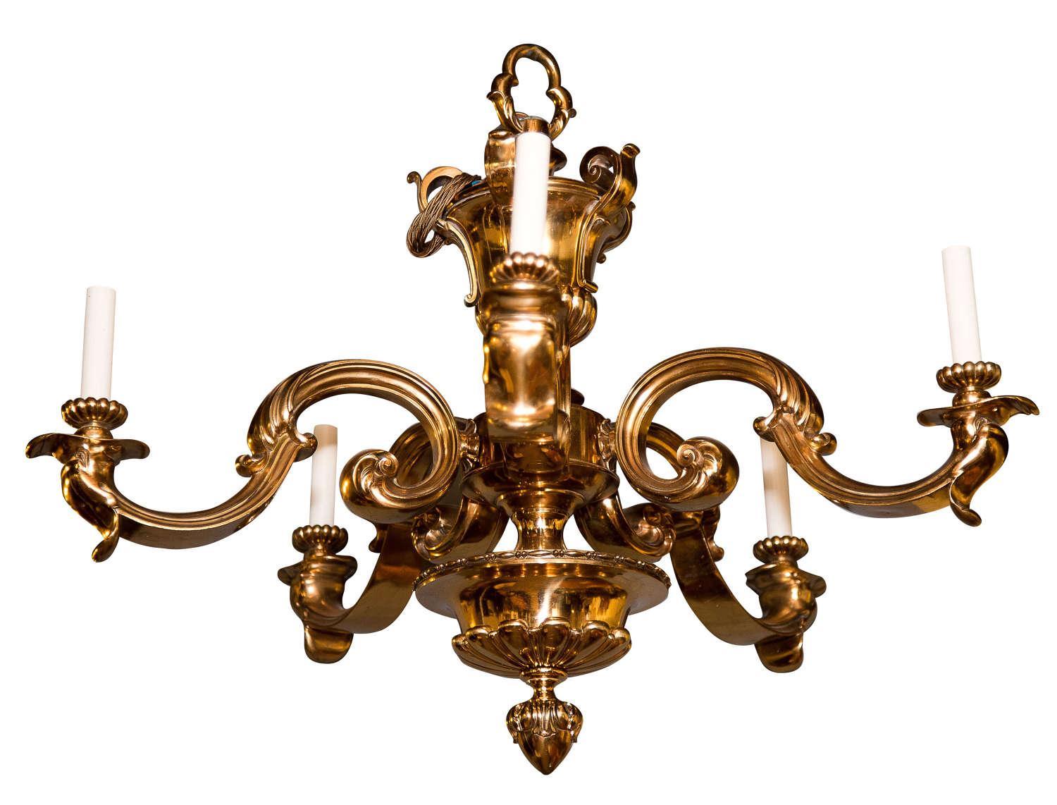 Large Pair of Gilt Metal 5 Light Chandeliers Rewired