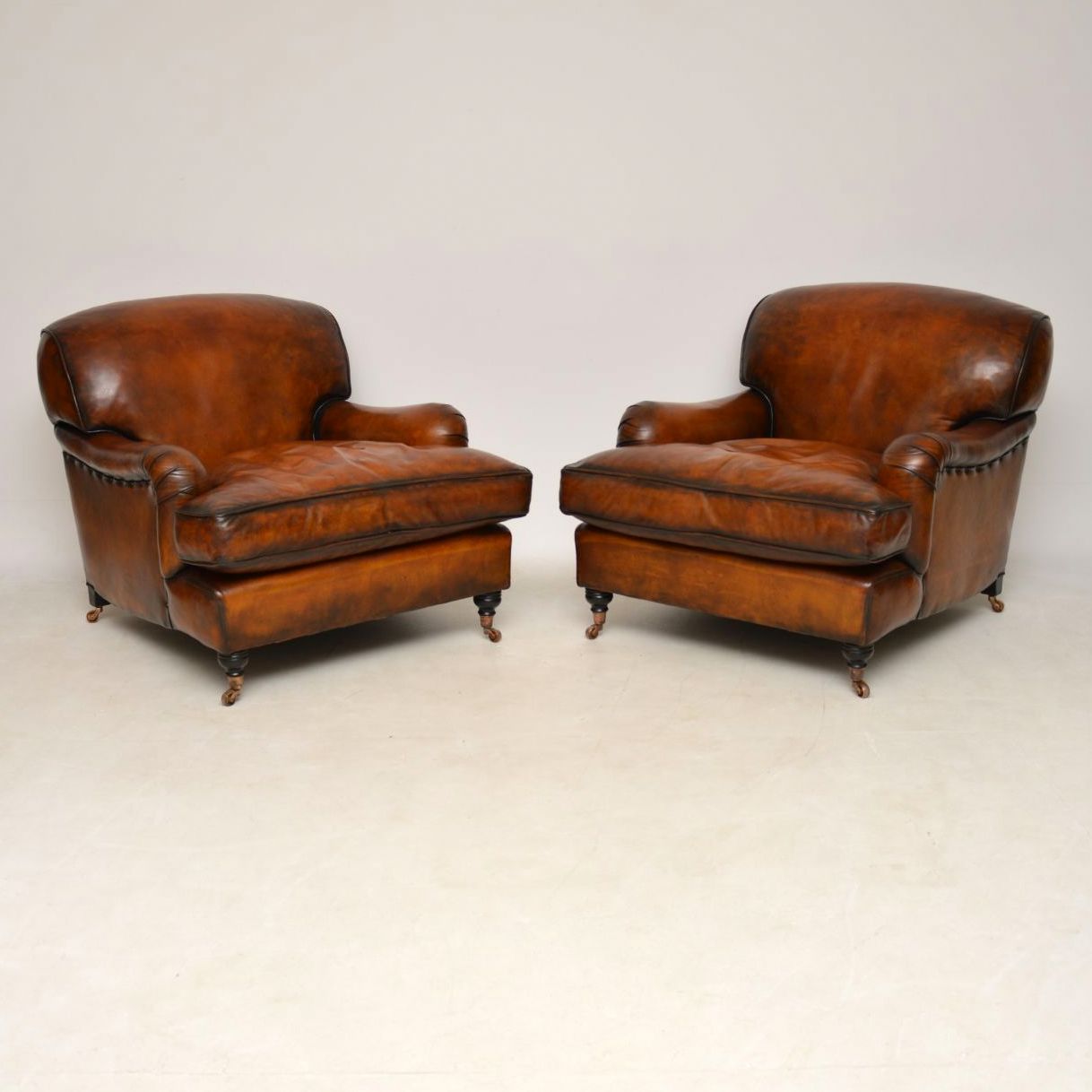 Large Pair of Leather Antique ‘Howard’ Style Armchairs