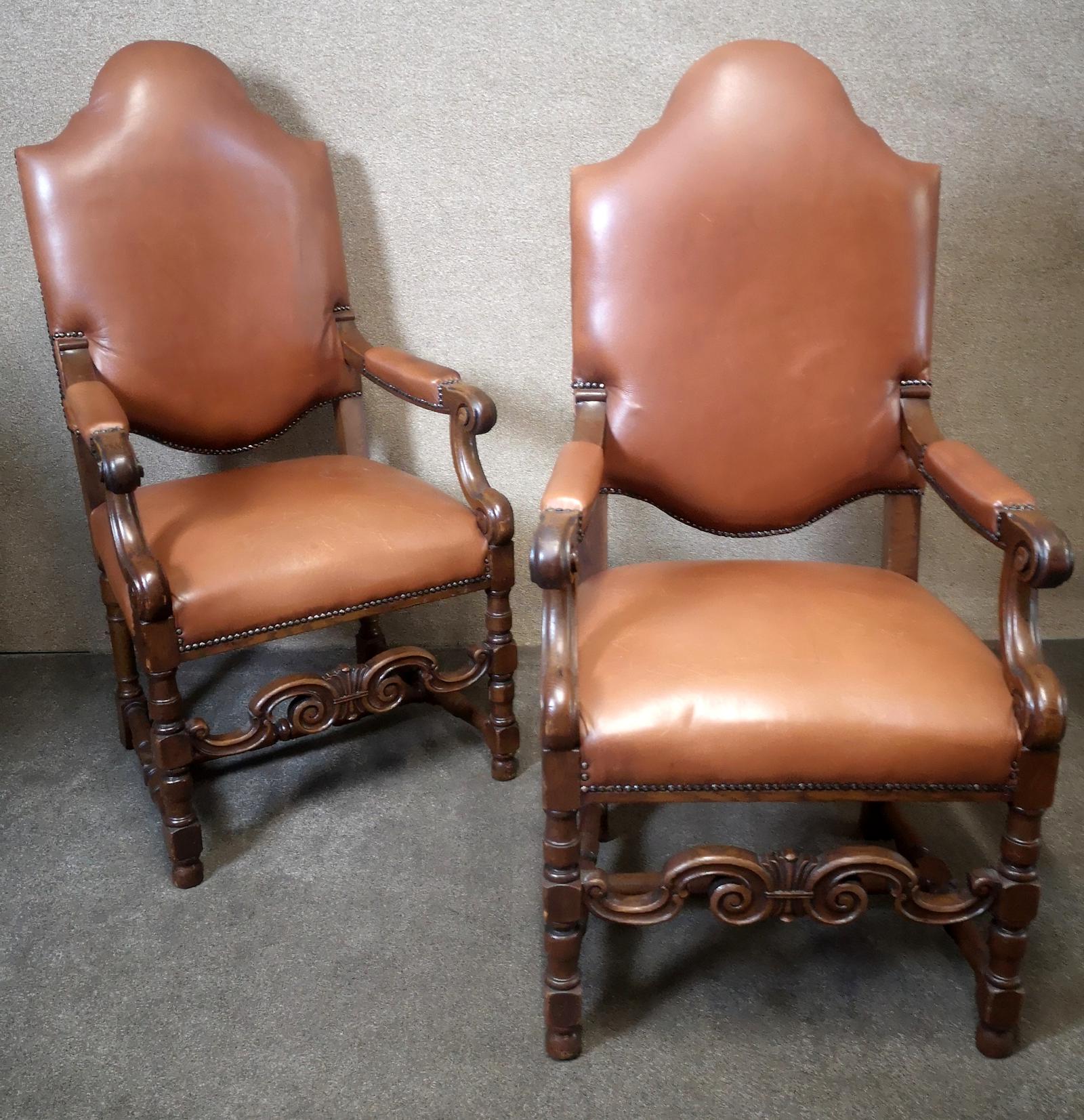 Large Pair of Oak & Leather Armchairs (1 of 11)