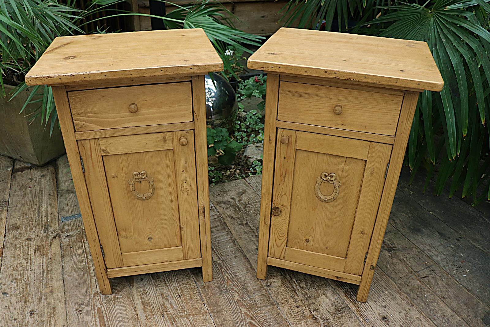 Large Pair of Old Pine Bedside Cabinets / Cupboards / Lamp Tables