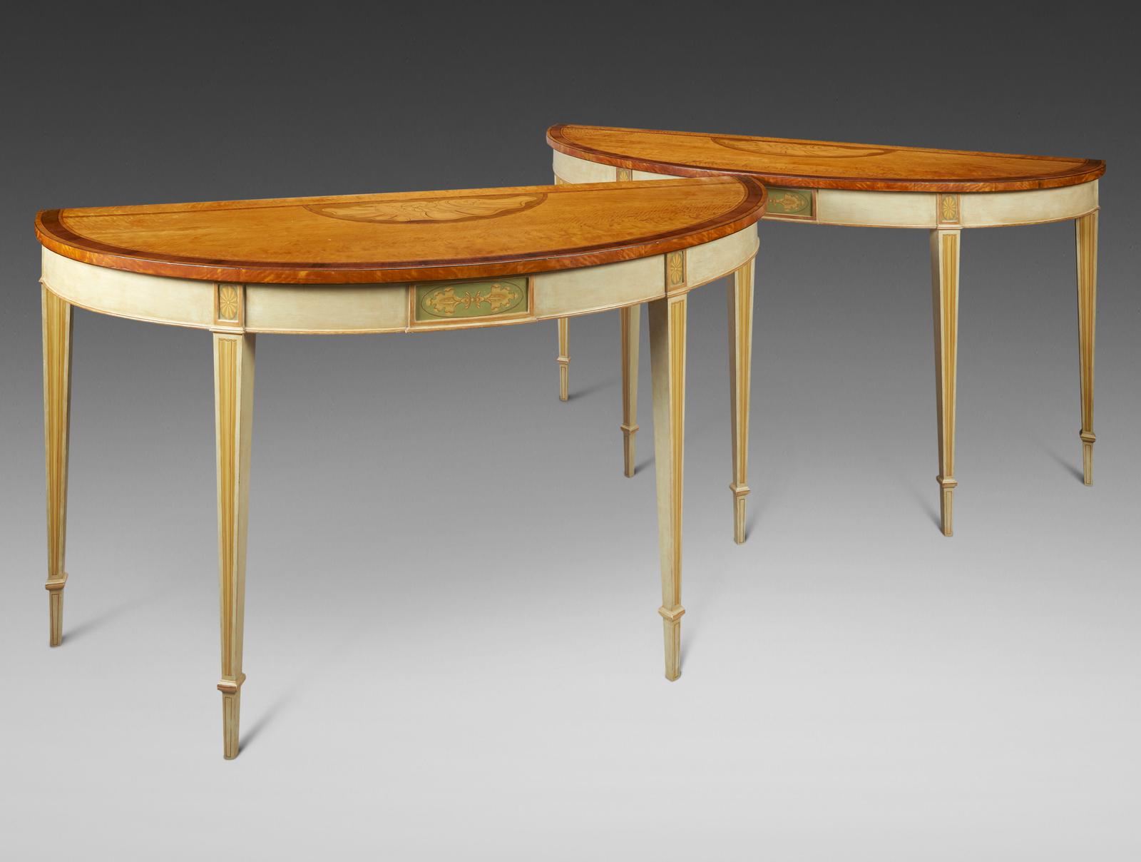 Large Pair of Satinwood & Painted Console Tables