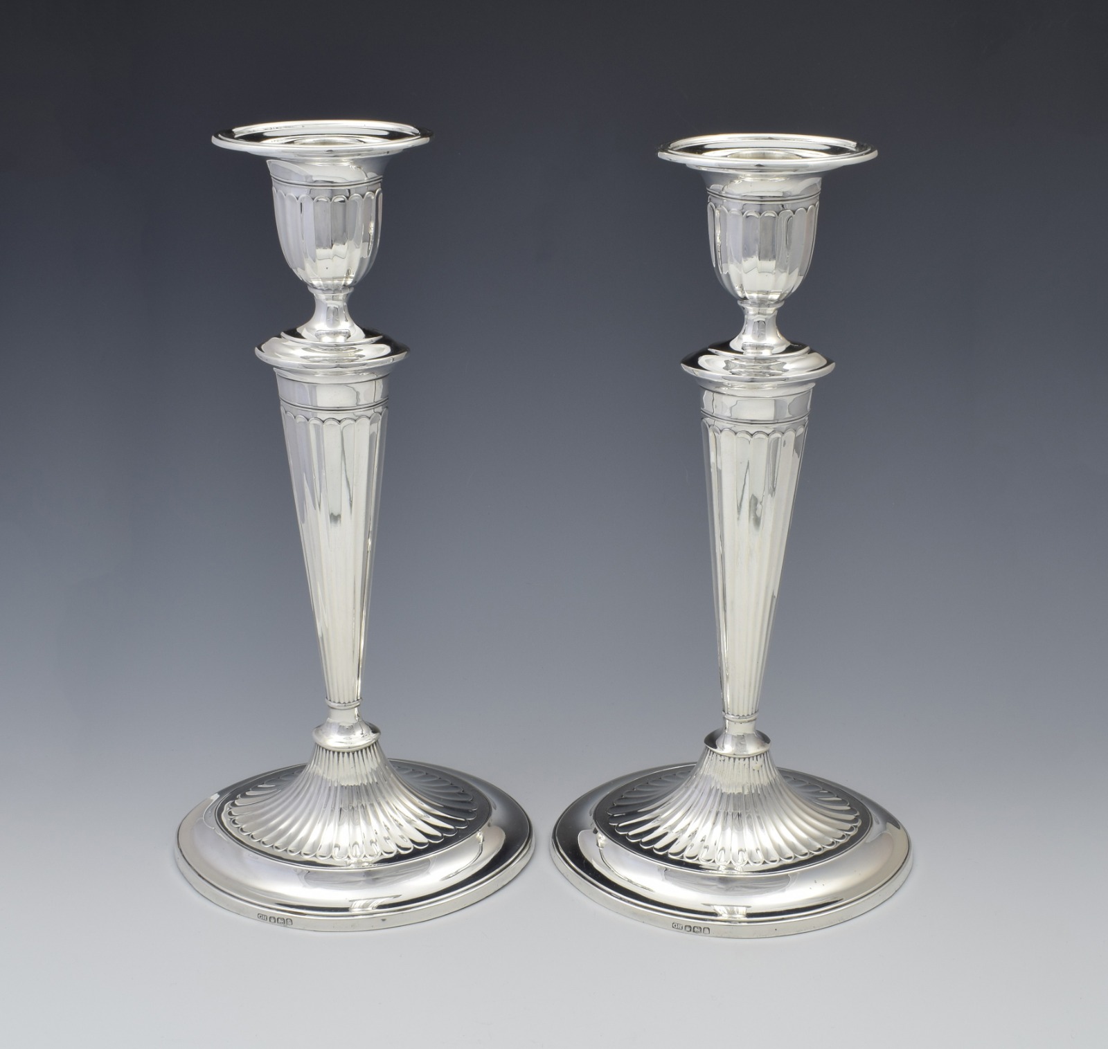 Large Pair of Sterling Silver Adam Style Candlesticks Sheffield 1923 (1 of 1)