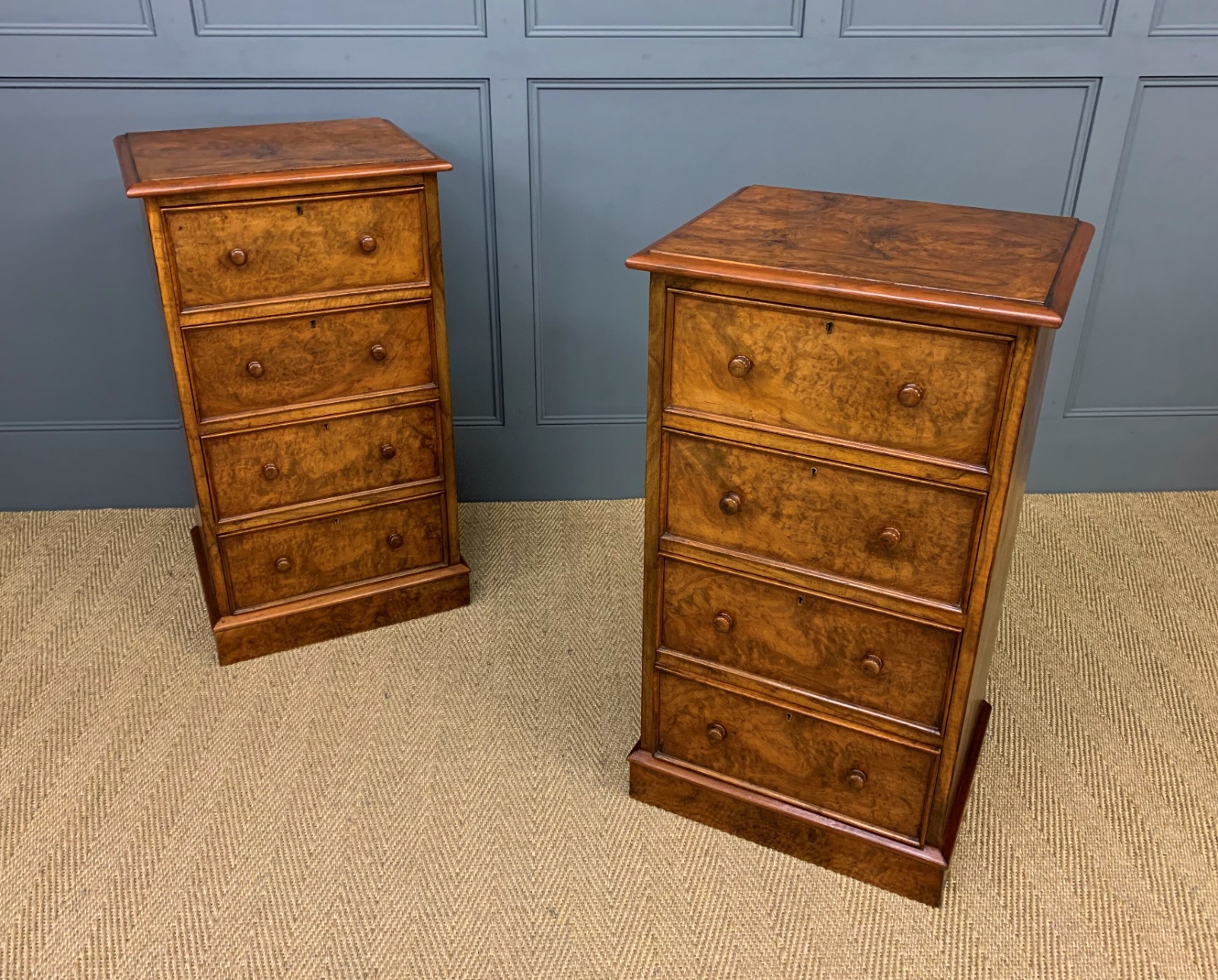Large Pair of Victorian Burr Walnut Bedside Chests