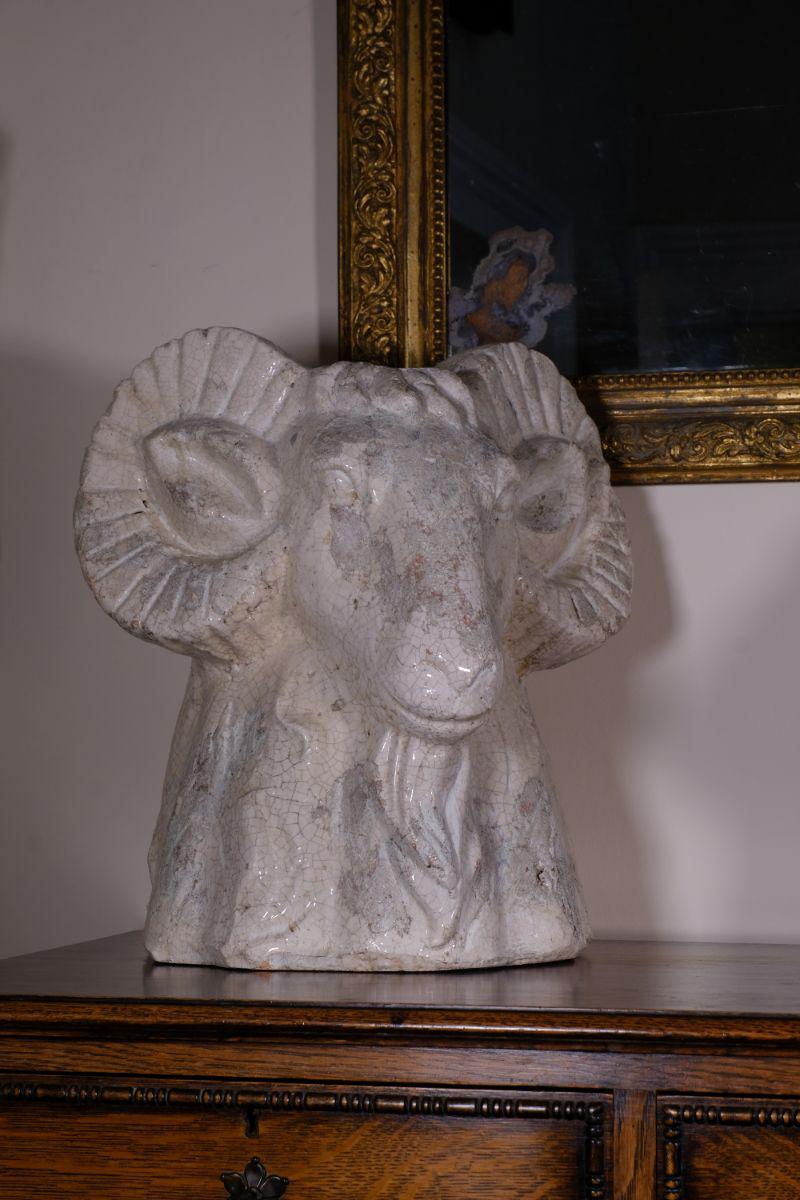 Large Part Glazed Decorative Pottery Of A Rams Head