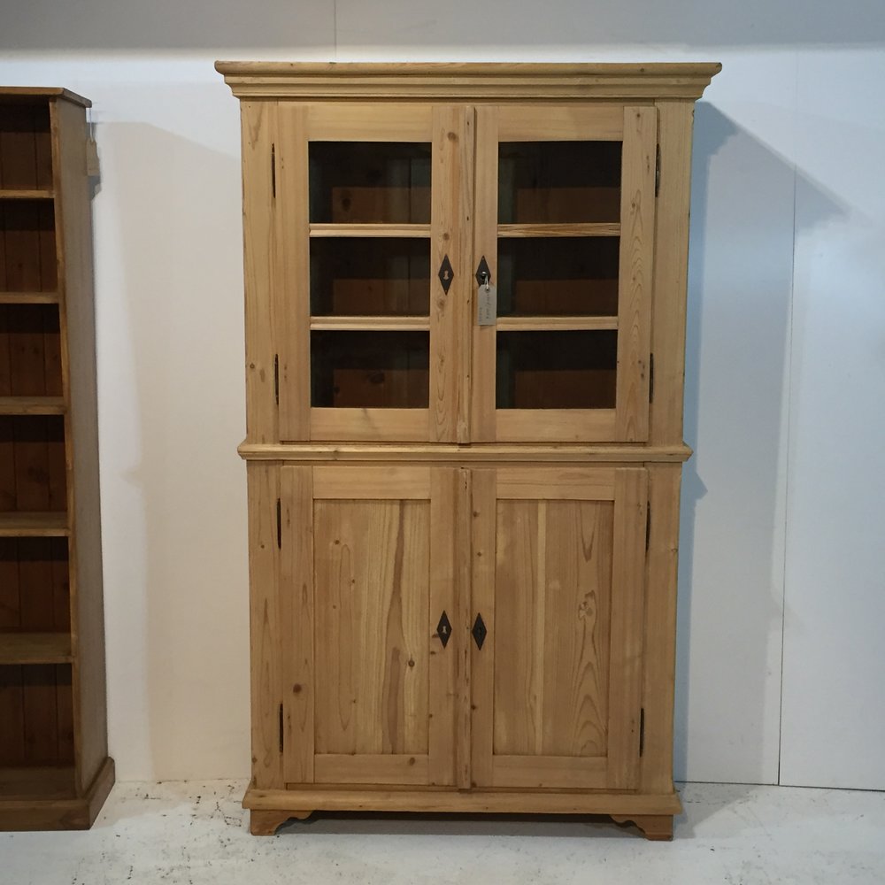Large Partly Glazed Antique Pine Cupboard c.1910