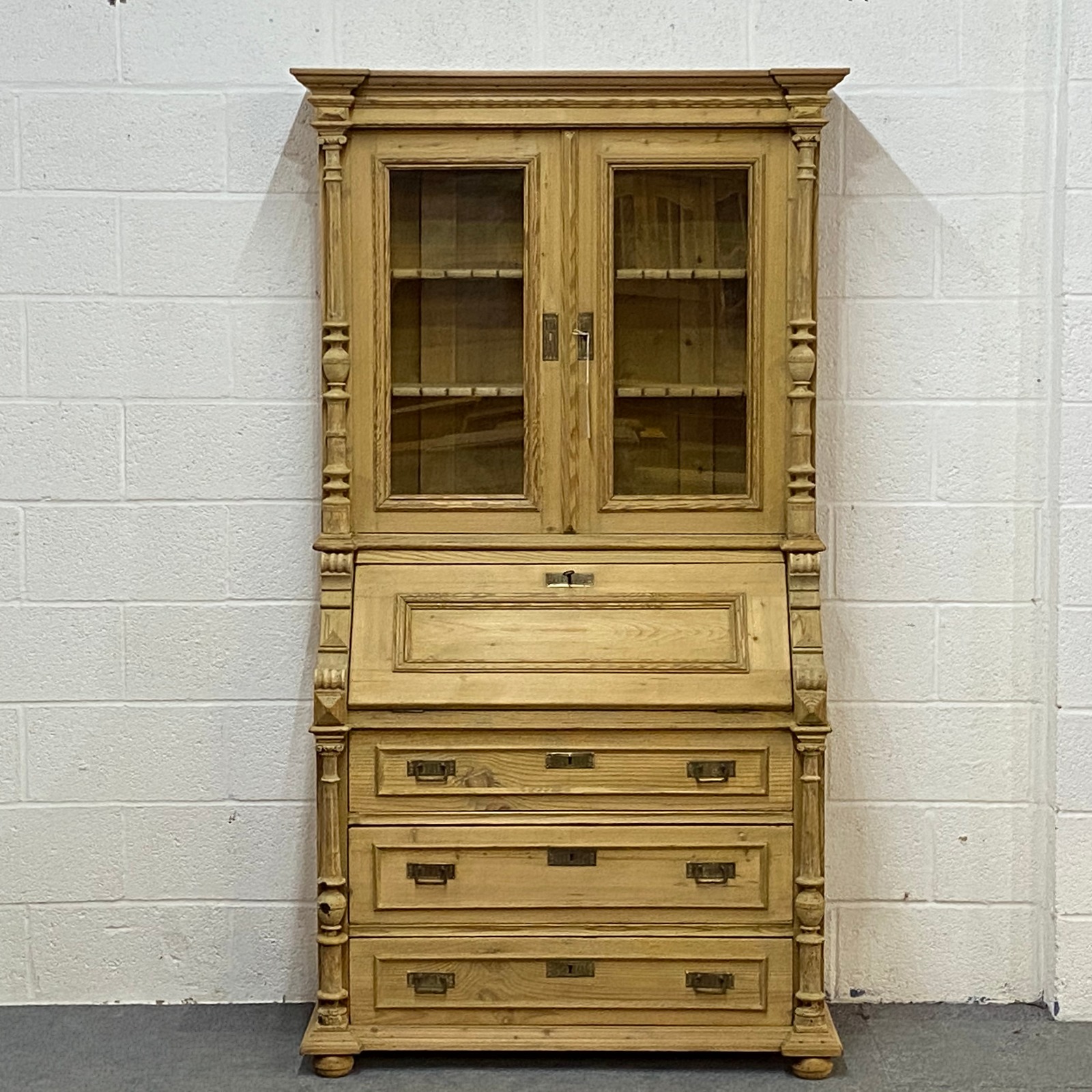 Large Partly Glazed Antique Pine Secretaire