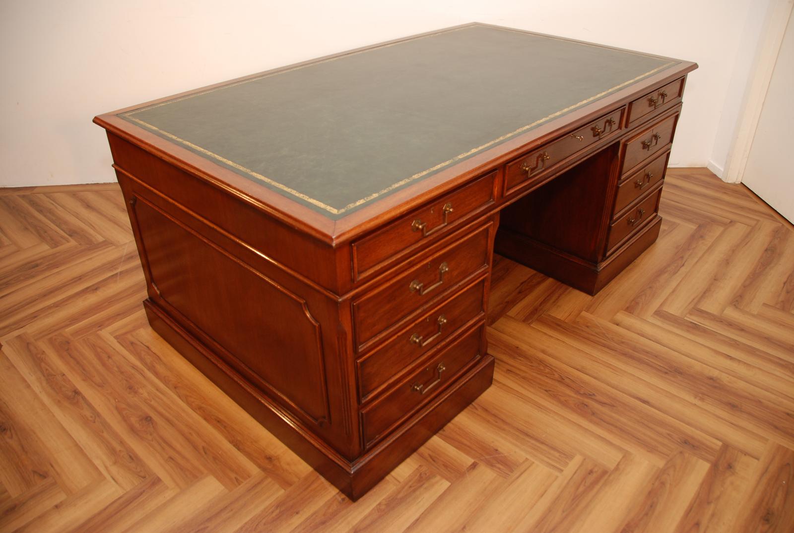 Large Partners Mahogany 6ft Twin Pedestal Green Leather Top Writing Desk