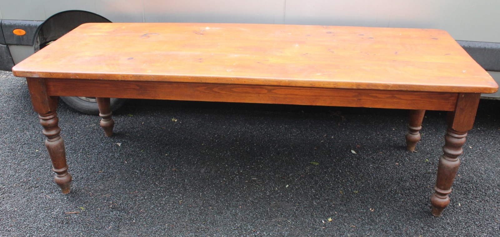 Large Pine Farmhouse Table on Turned Legs c.1900
